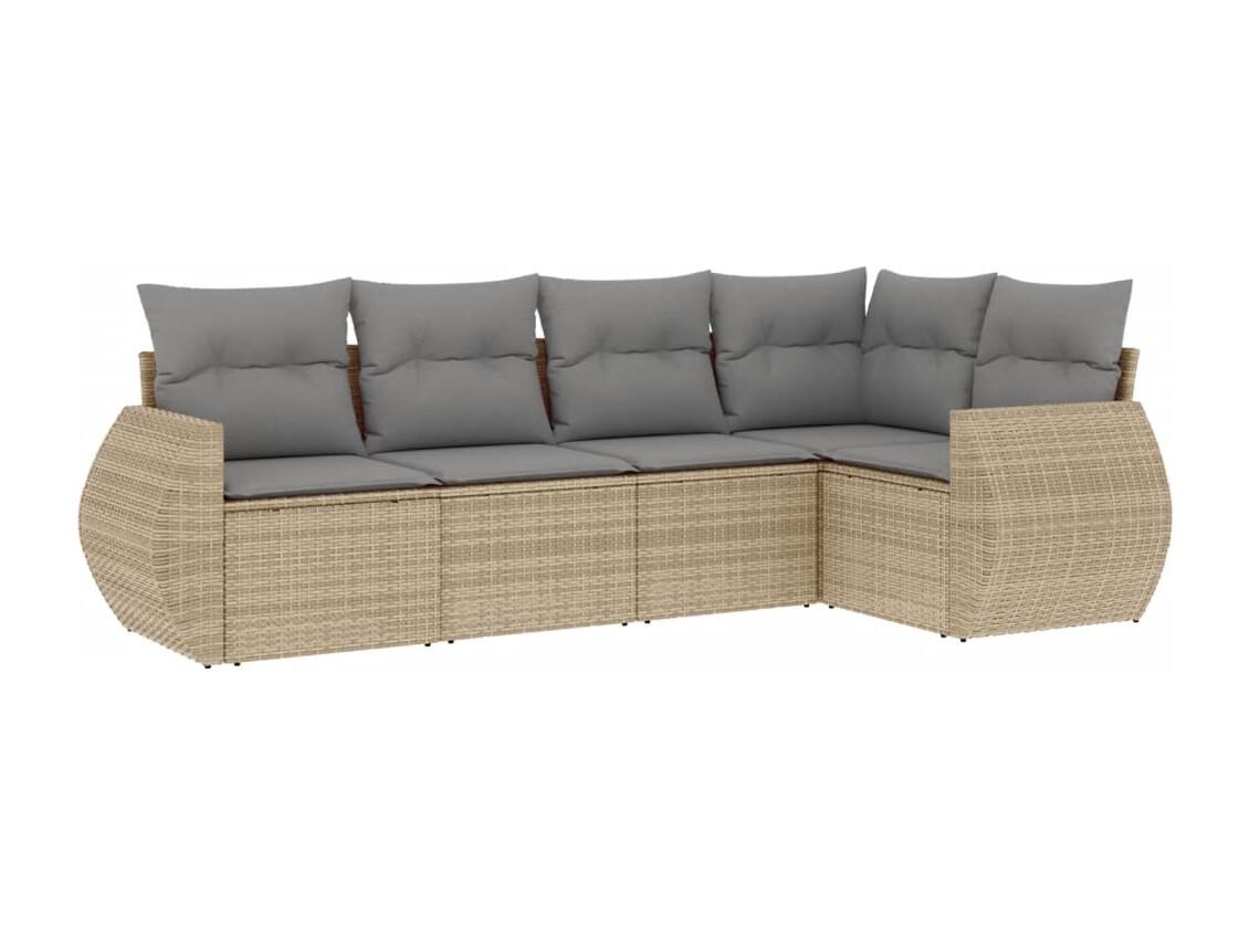 5 pcs conjunto de sofás p/ jardim com almofadões vime PE bege PT925683