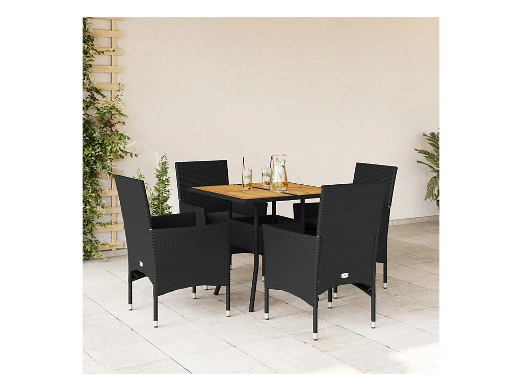 5 pcs conjunto jantar jardim c/ almofadões vime PE/acácia preto PT989149