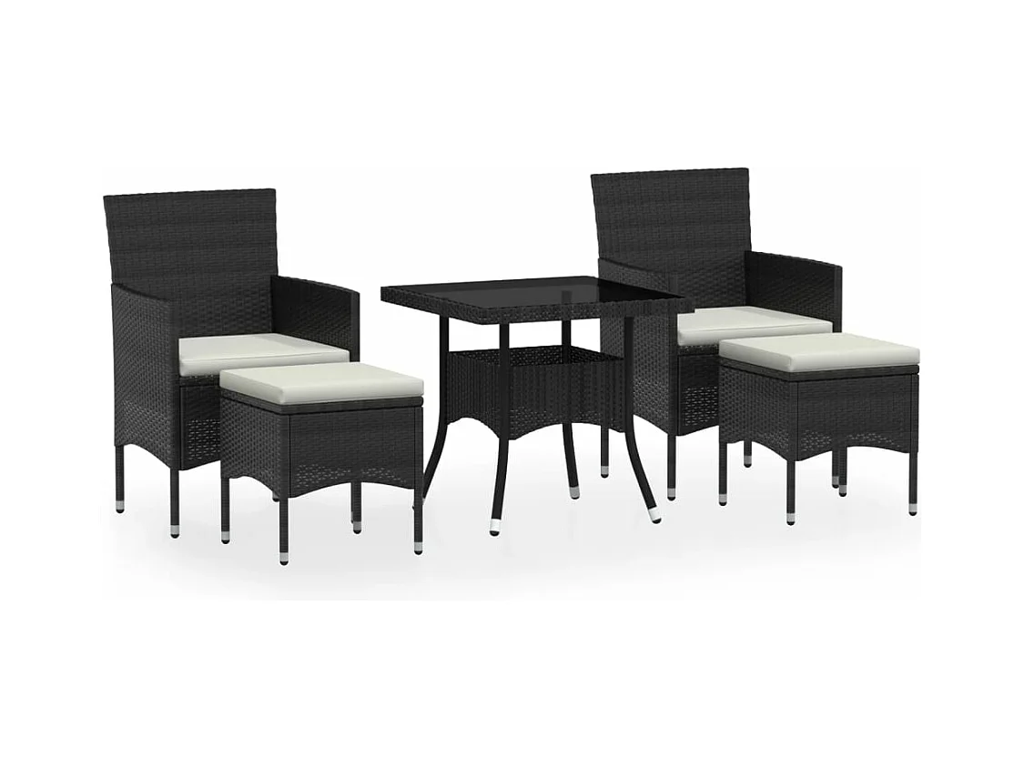 5 peças conjunto de jantar p/ jardim c/ almofadões vime PE preto