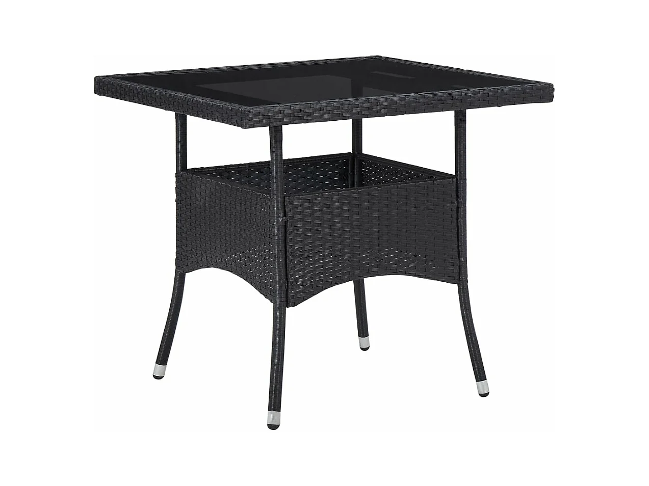 5 pcs conjunto jantar p/ jardim vime PE e vidro temperado preto PT499327
