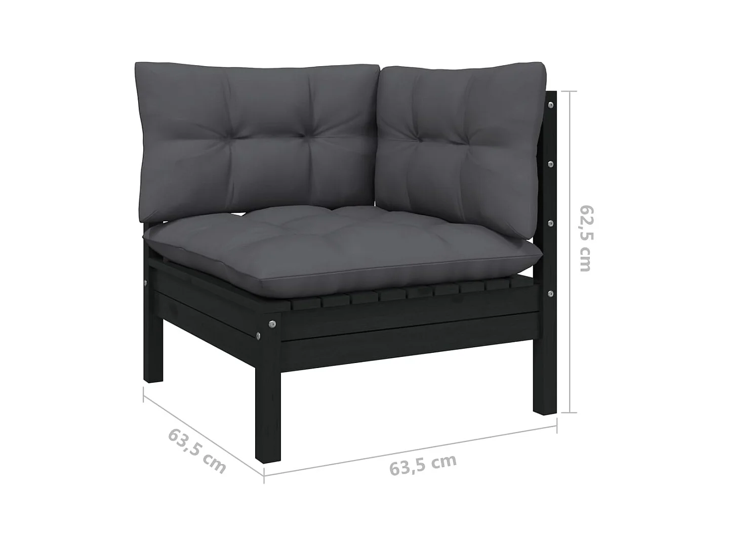 5 pcs conjunto lounge jardim c/ almofadões pinho maciço preto