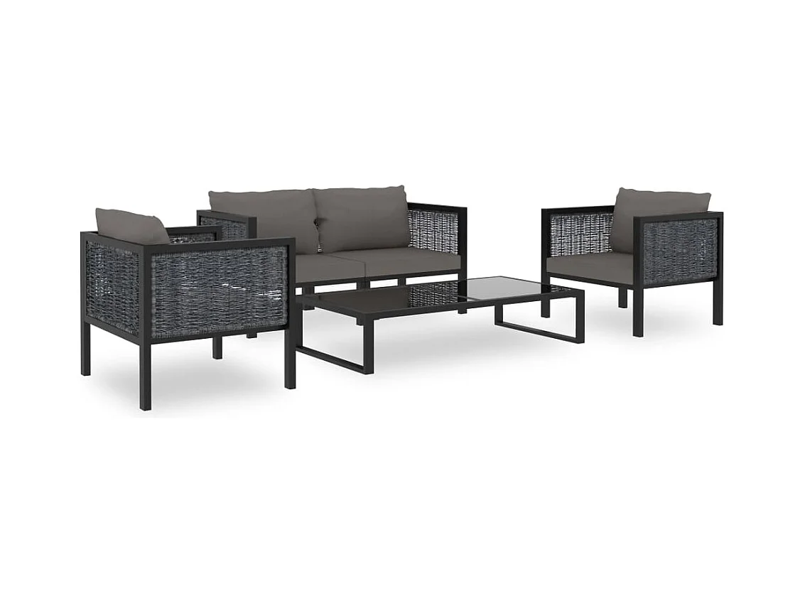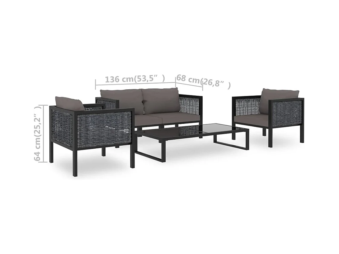 5 pcs conjunto lounge de jardim c/ almofadões vime PE antracite