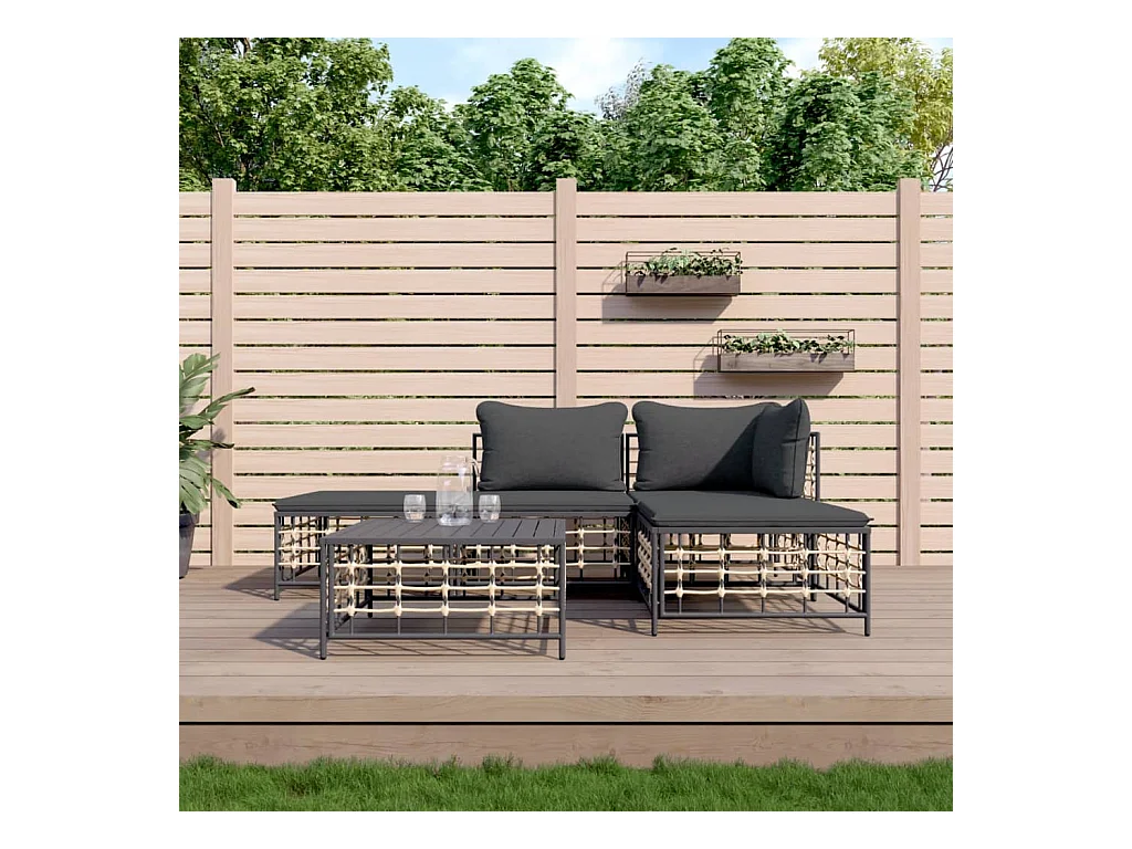 4 pcs conjunto lounge de jardim c/ almofadões vime PE antracite PT823690