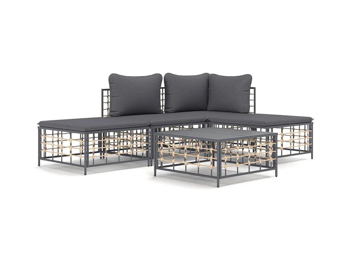 5 pcs conjunto lounge de jardim c/ almofadões vime PE antracite PT237147
