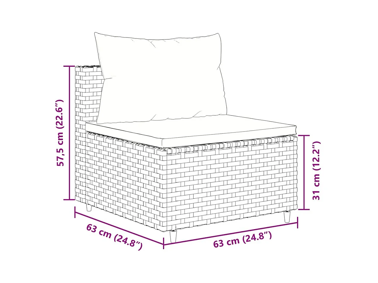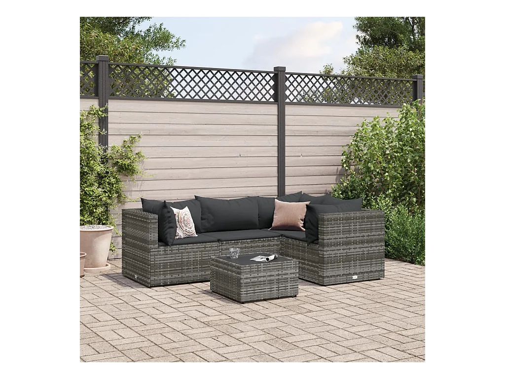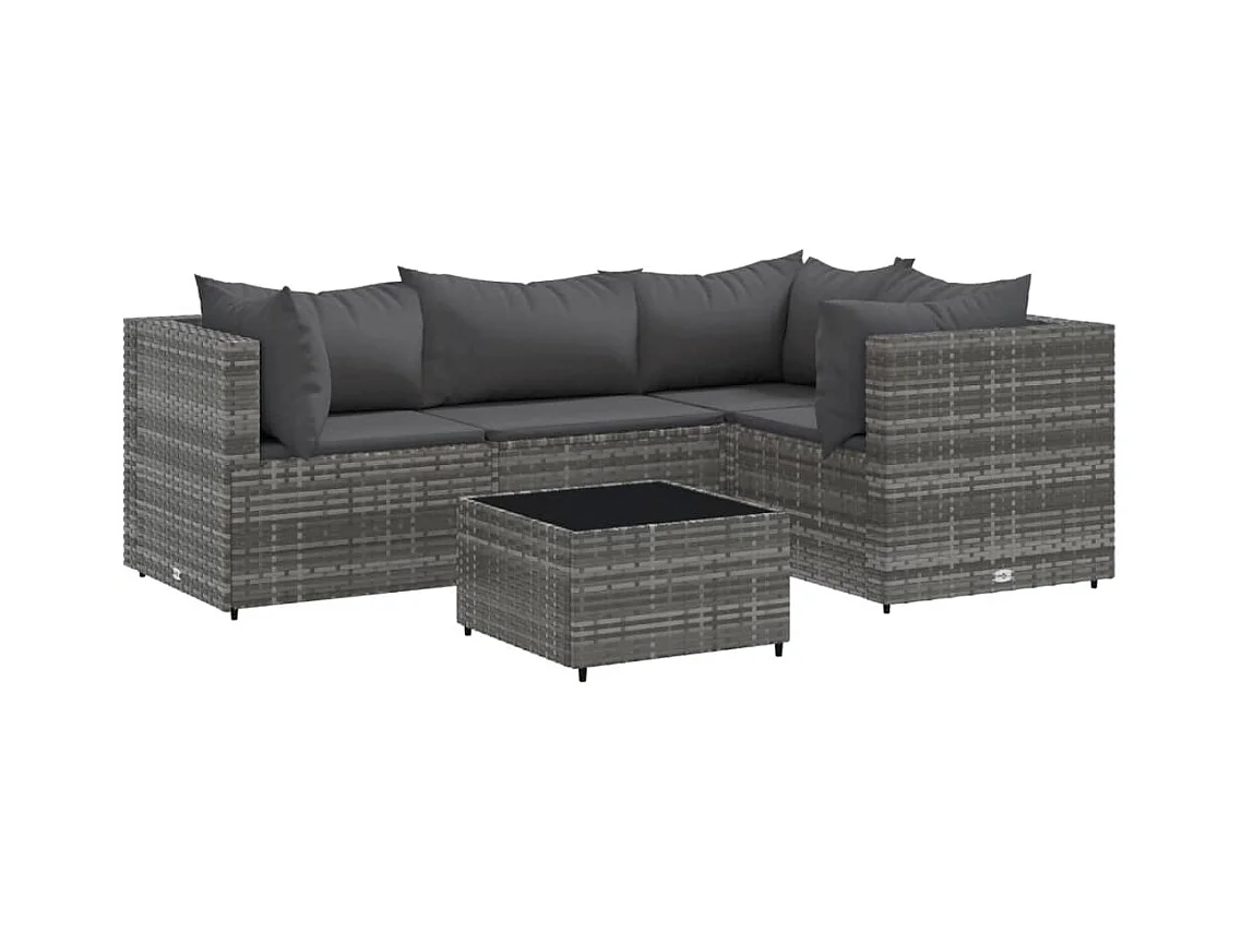 5 pcs conjunto lounge de jardim c/ almofadões vime PE cinzento