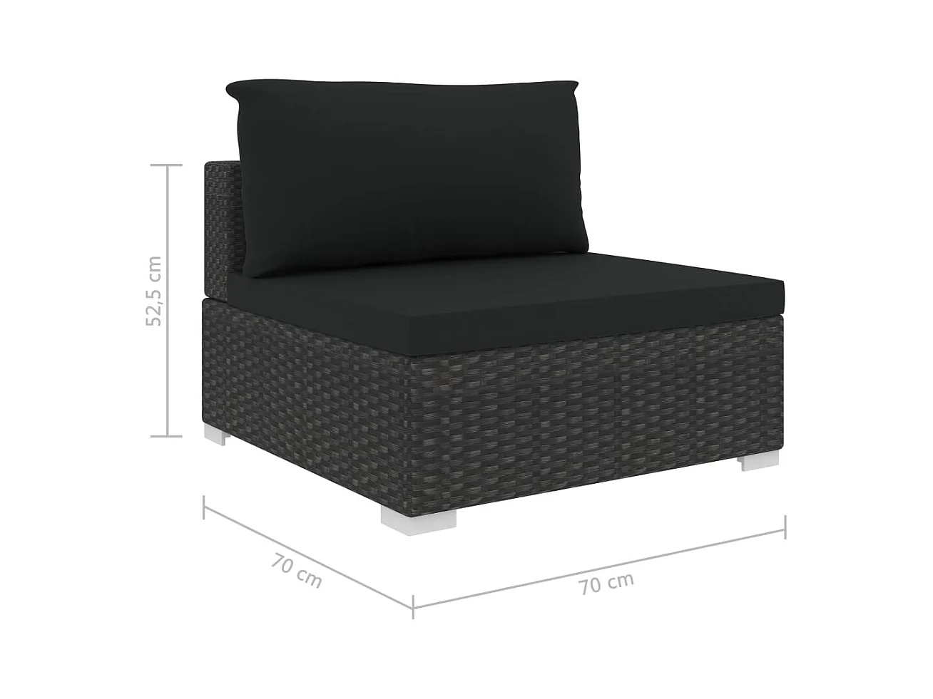 5 pcs conjunto lounge de jardim c/ almofadões vime PE preto