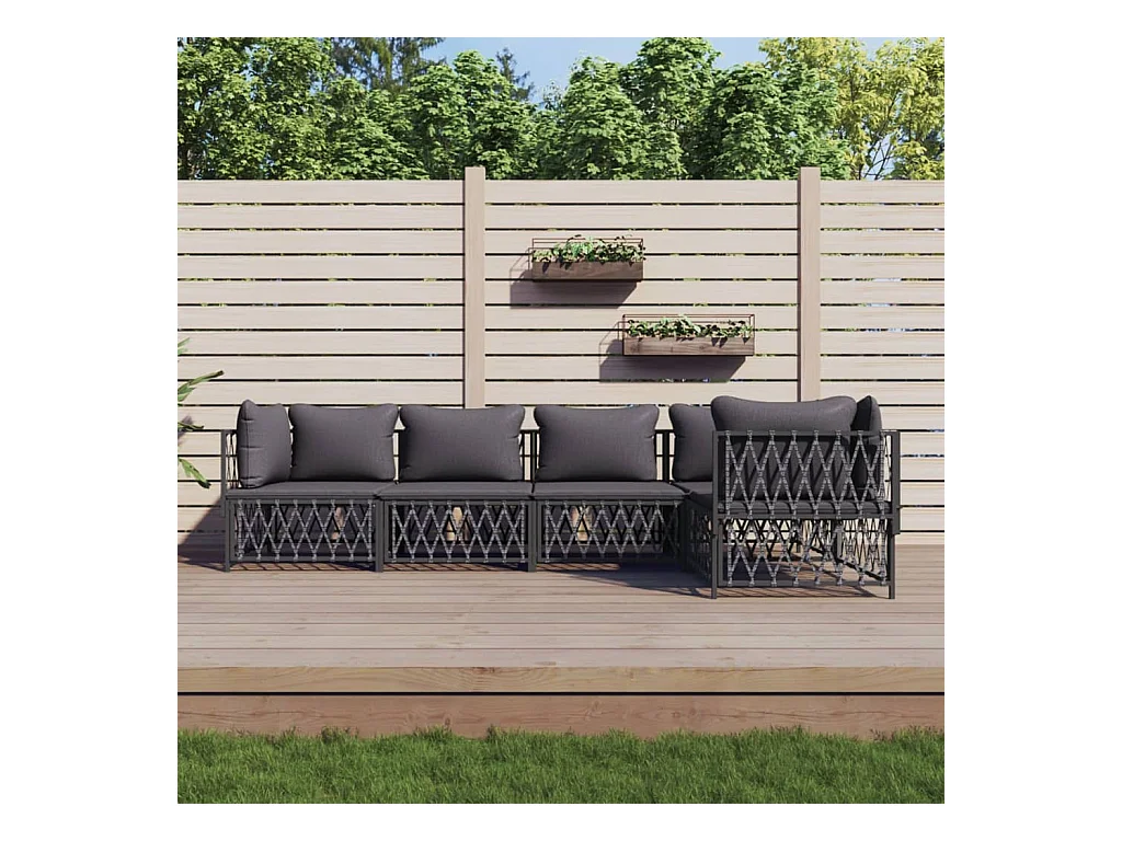 5 pcs conjunto lounge de jardim com almofadões aço antracite PT65310