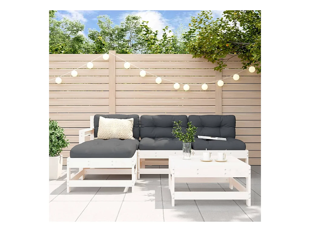 5 pcs conjunto lounge de jardim madeira de pinho maciça branco PT73421