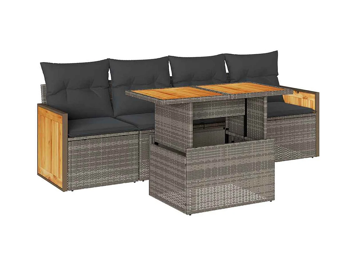 5 pcs conjunto sofás de jardim c/ almofadões acácia e vime PE
