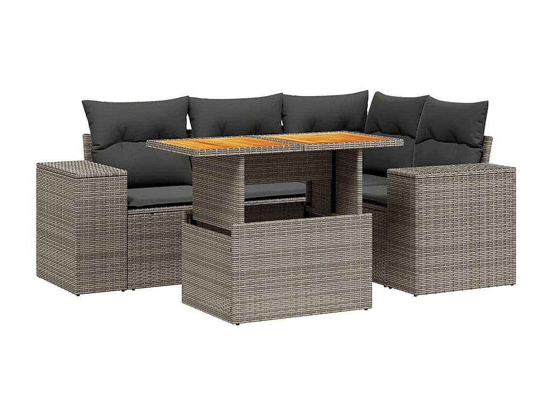 5 pcs conjunto sofás de jardim c/ almofadões vime PE cinzento