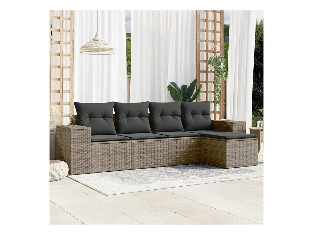5 pcs conjunto sofás de jardim c/ almofadões vime PE cinzento PT634180