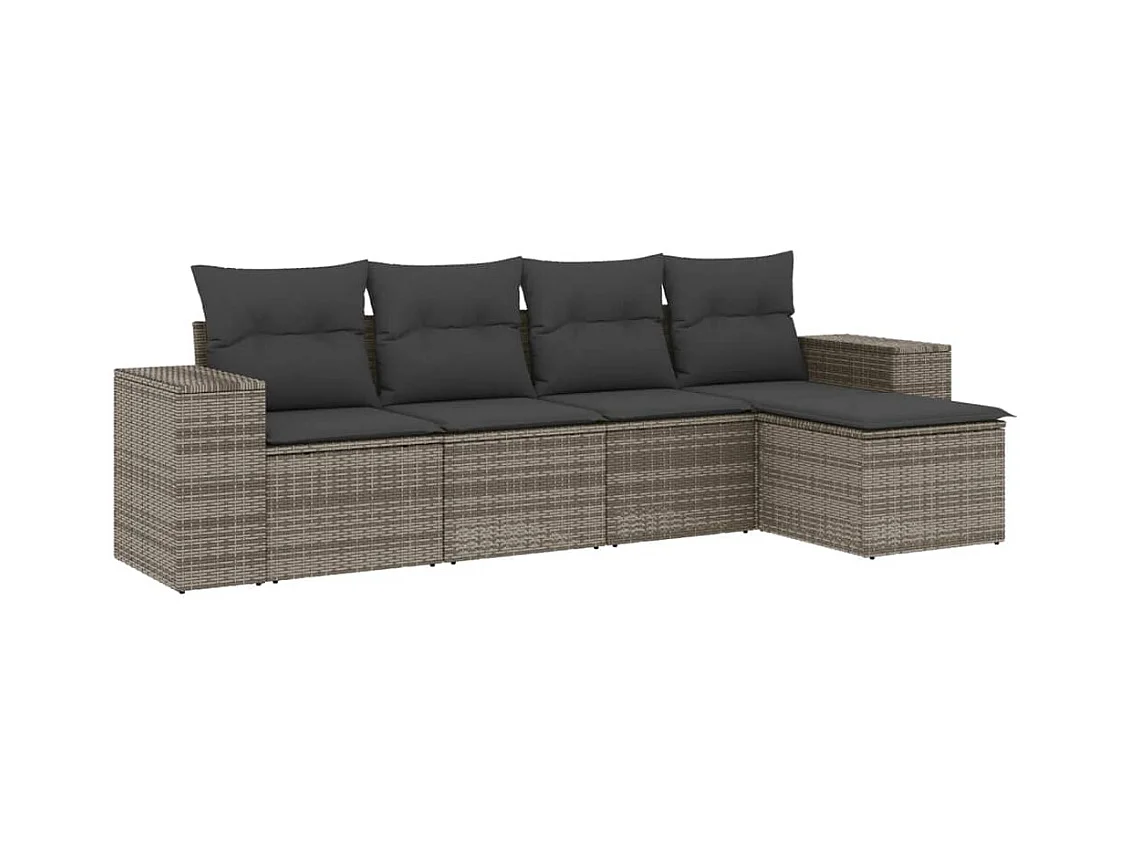 5 pcs conjunto sofás de jardim c/ almofadões vime PE cinzento PT285077