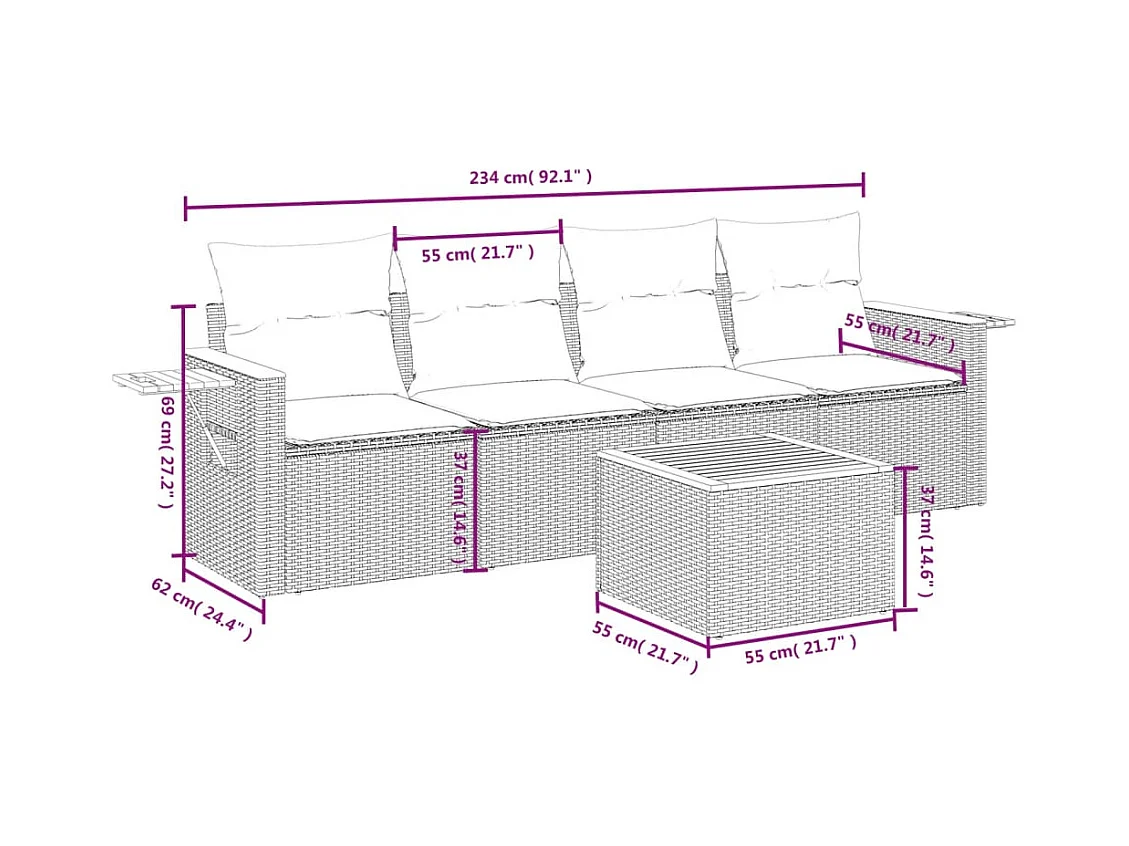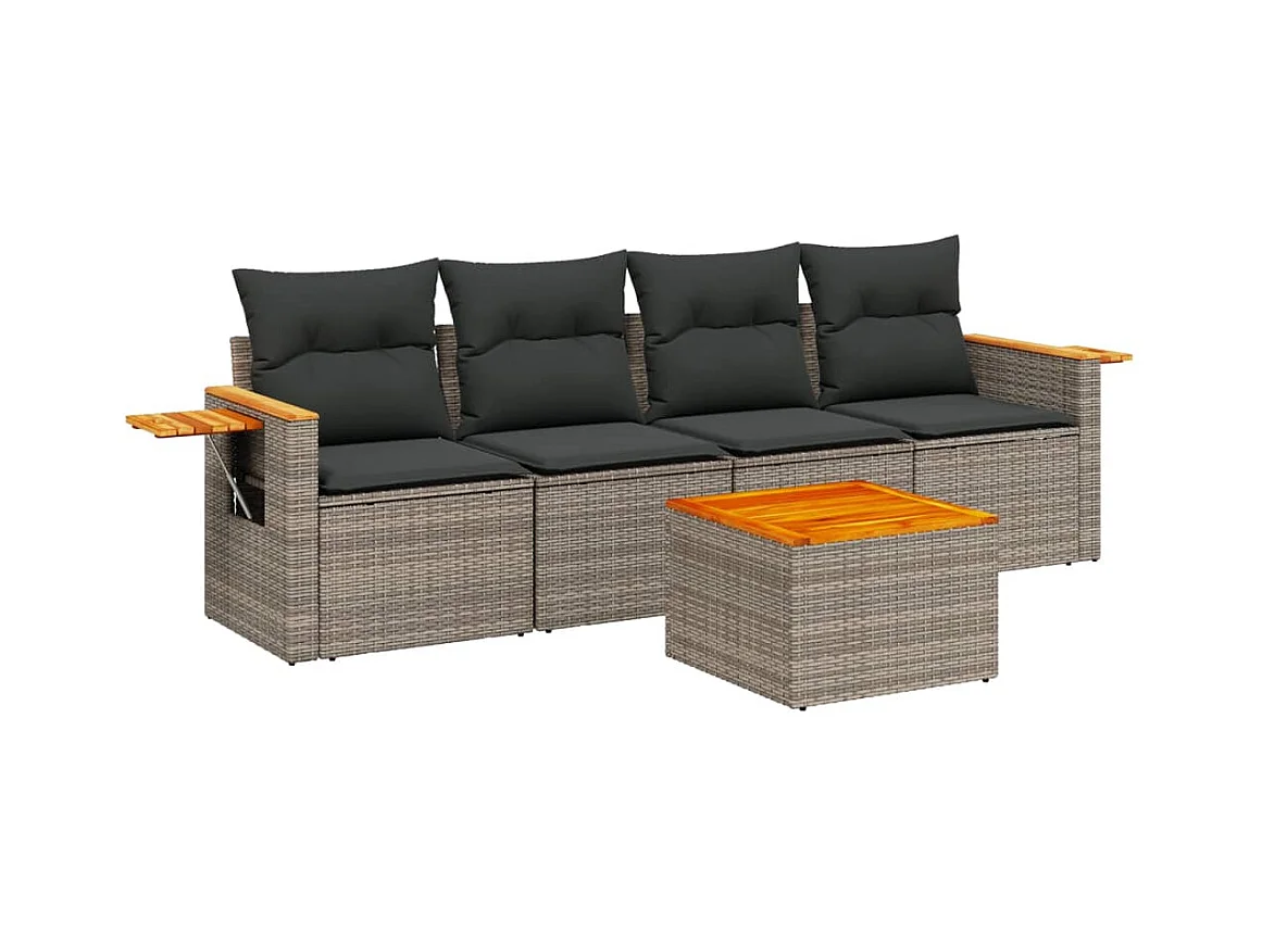 5 pcs conjunto sofás de jardim c/ almofadões vime PE cinzento PT967522