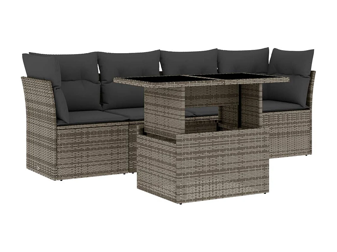 5 pcs conjunto sofás de jardim c/ almofadões vime PE cinzento PT524360