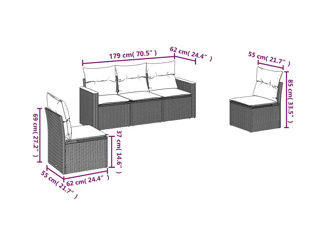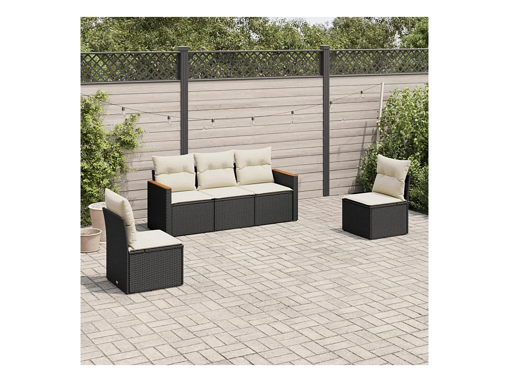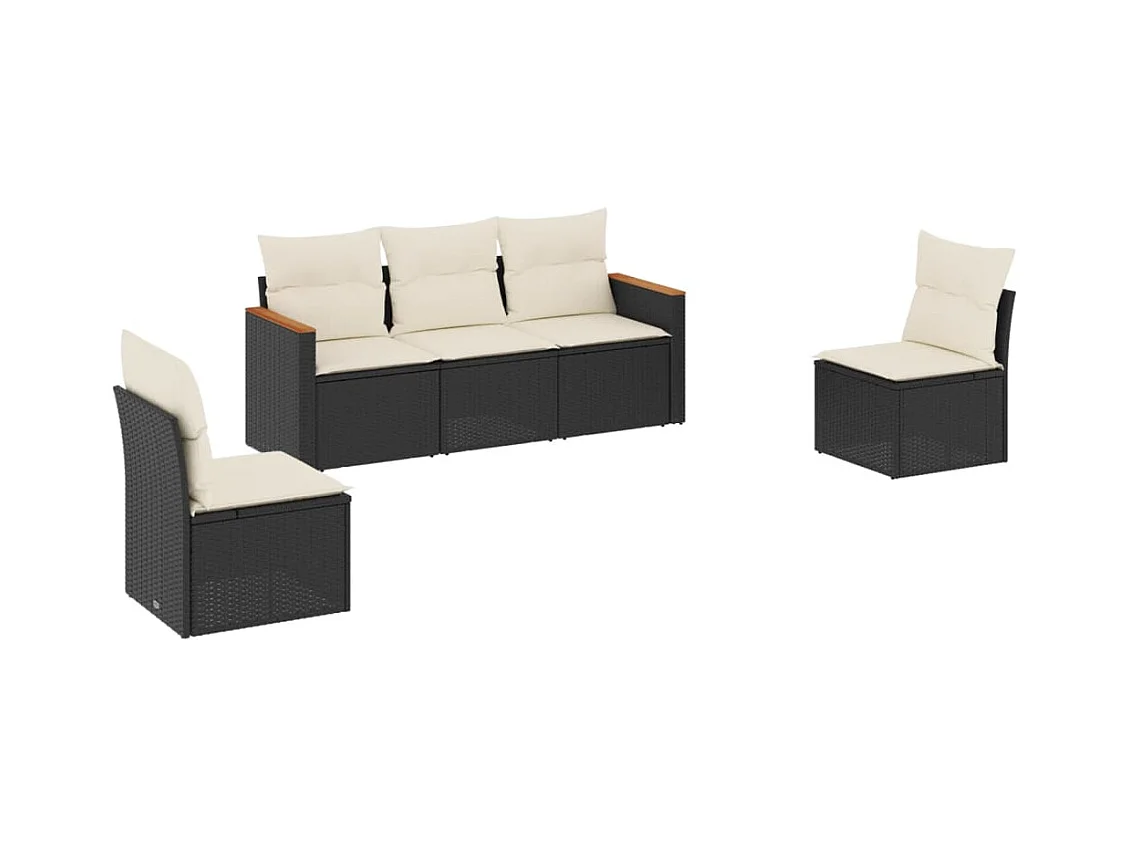 5 pcs conjunto sofás de jardim com almofadões vime PE preto PT139286