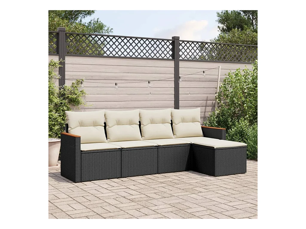 5 pcs conjunto sofás de jardim com almofadões vime PE preto PT512437