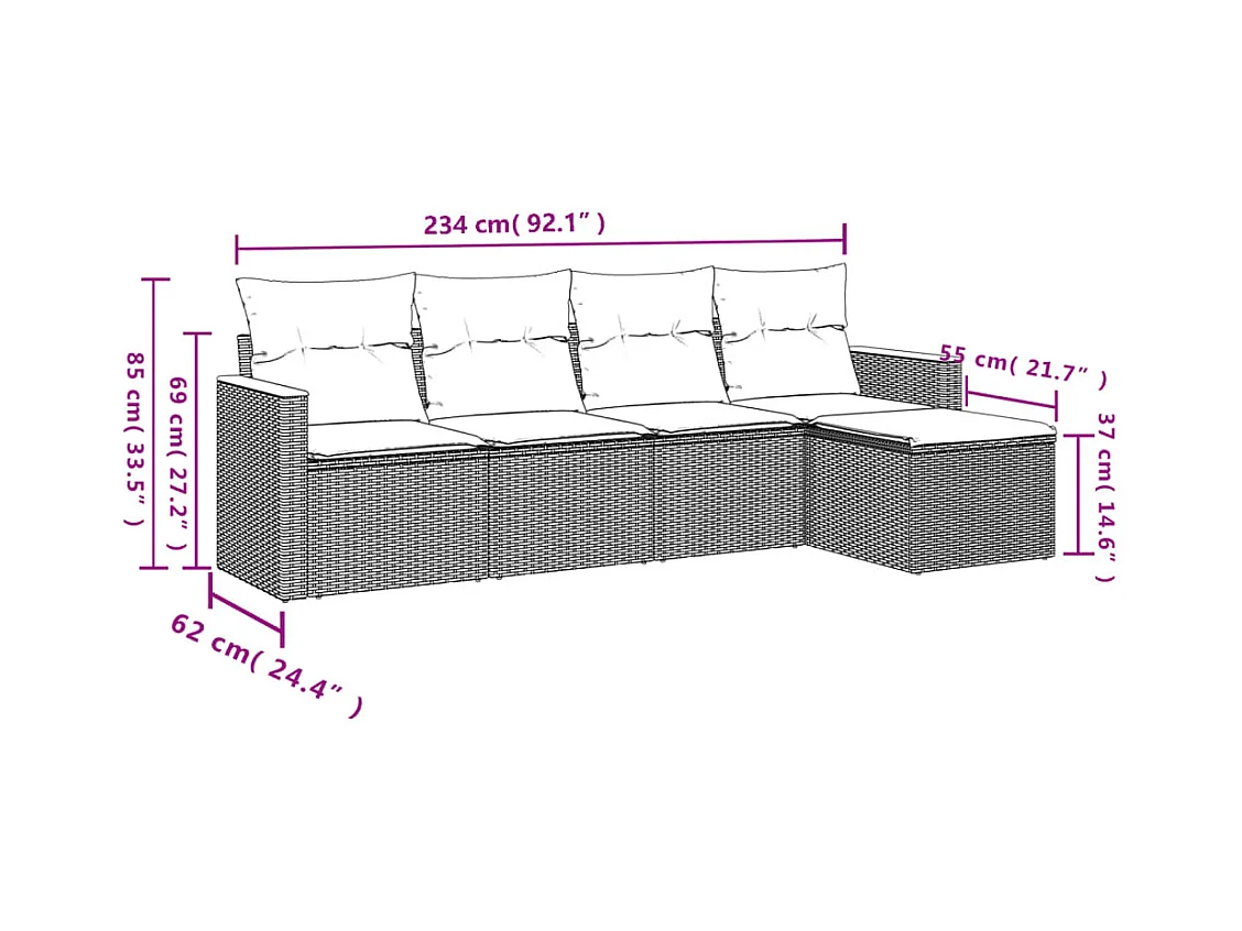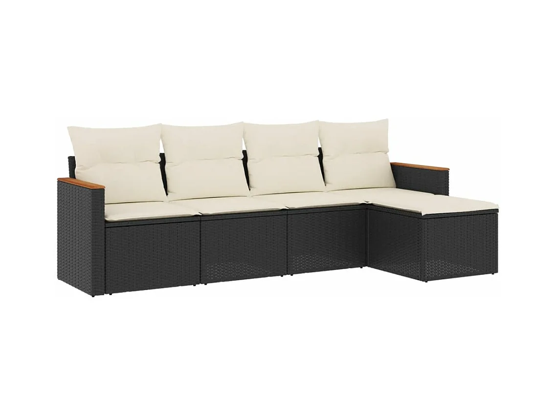 5 pcs conjunto sofás de jardim com almofadões vime PE preto PT391282