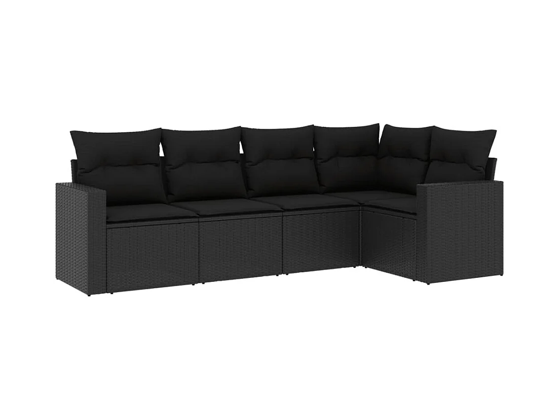 5 pcs conjunto sofás de jardim com almofadões vime PE preto PT147502