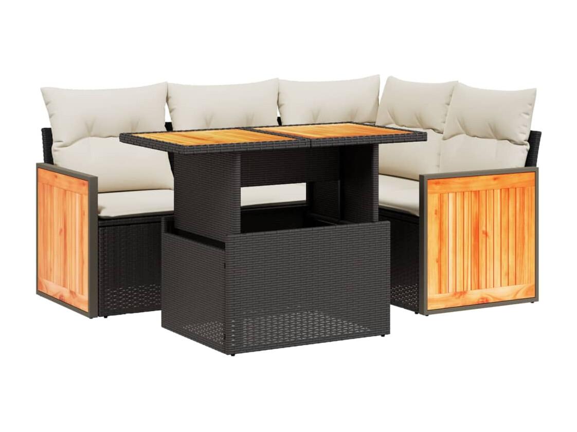 5 peças conjunto sofás de jardim com almofadões vime PE preto