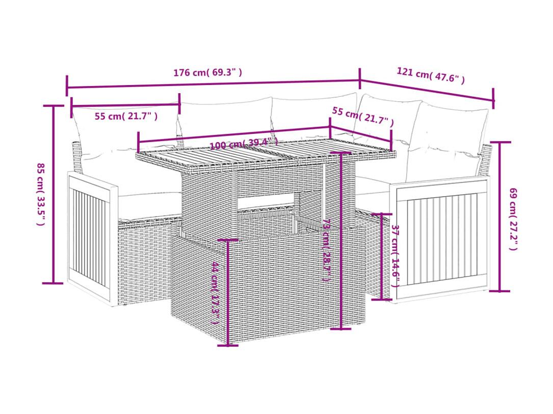 5 pcs conjunto sofás de jardim com almofadões vime PE preto PT733683