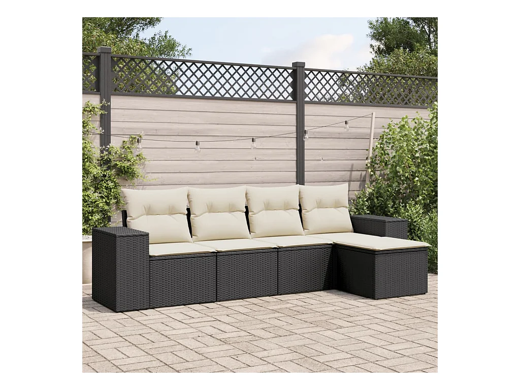 5 pcs conjunto sofás de jardim com almofadões vime PE preto PT512437