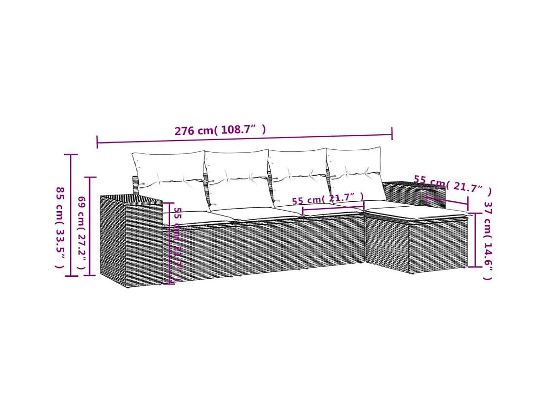 5 pcs conjunto sofás de jardim com almofadões vime PE preto PT733683