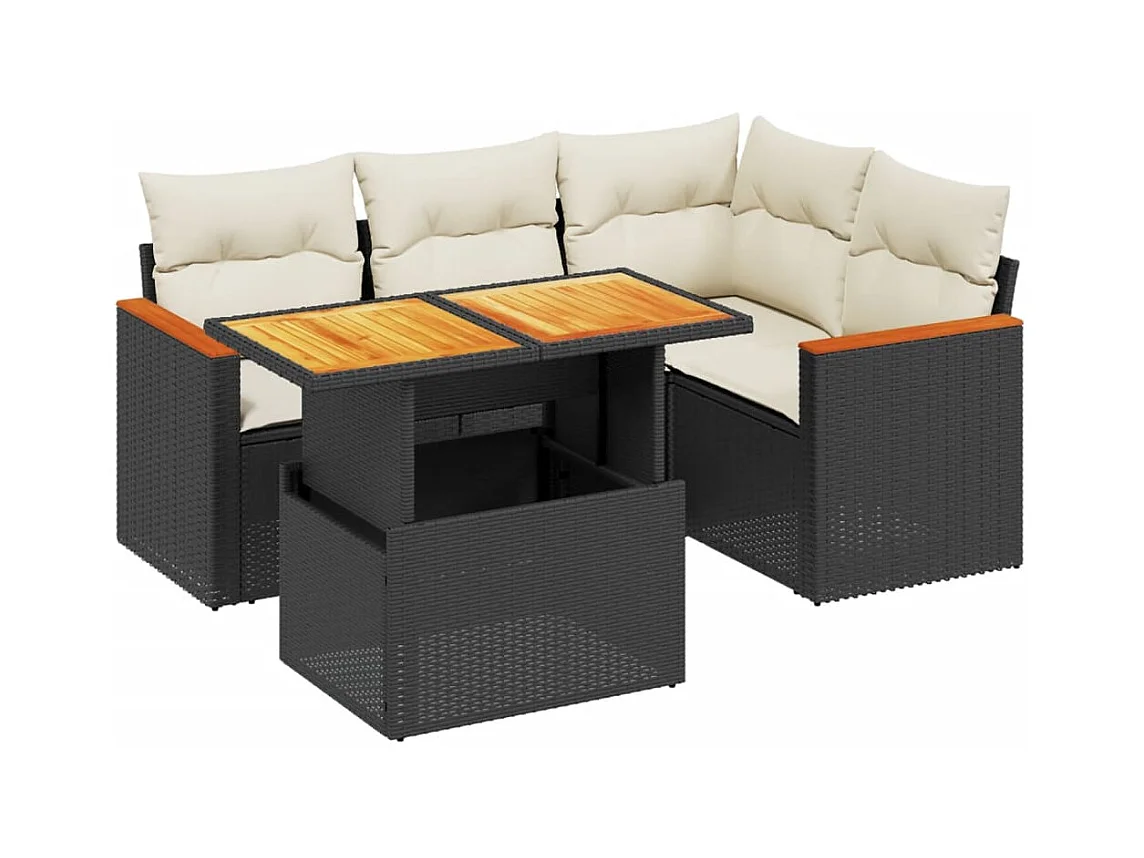 5 pcs conjunto sofás de jardim com almofadões vime PE preto PT877208