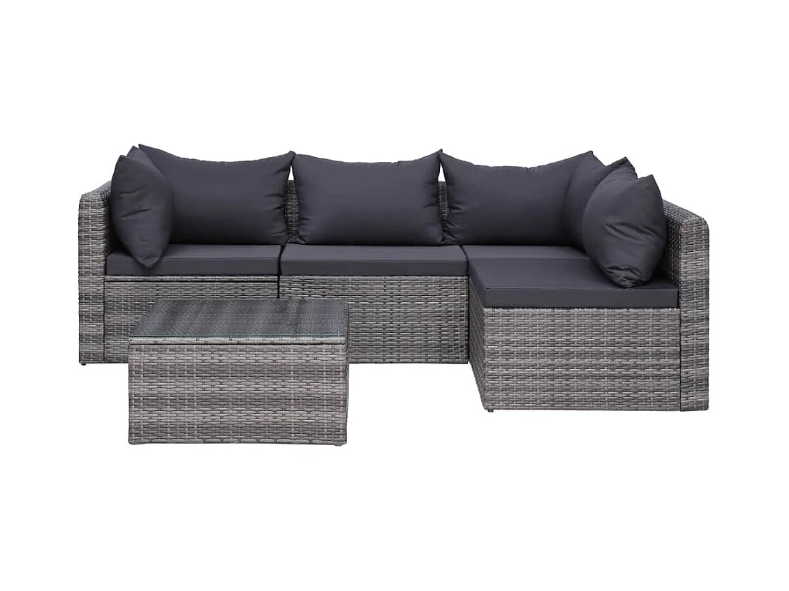 5 pcs conjunto lounge de jardim c/ almofadões vime PE cinzento