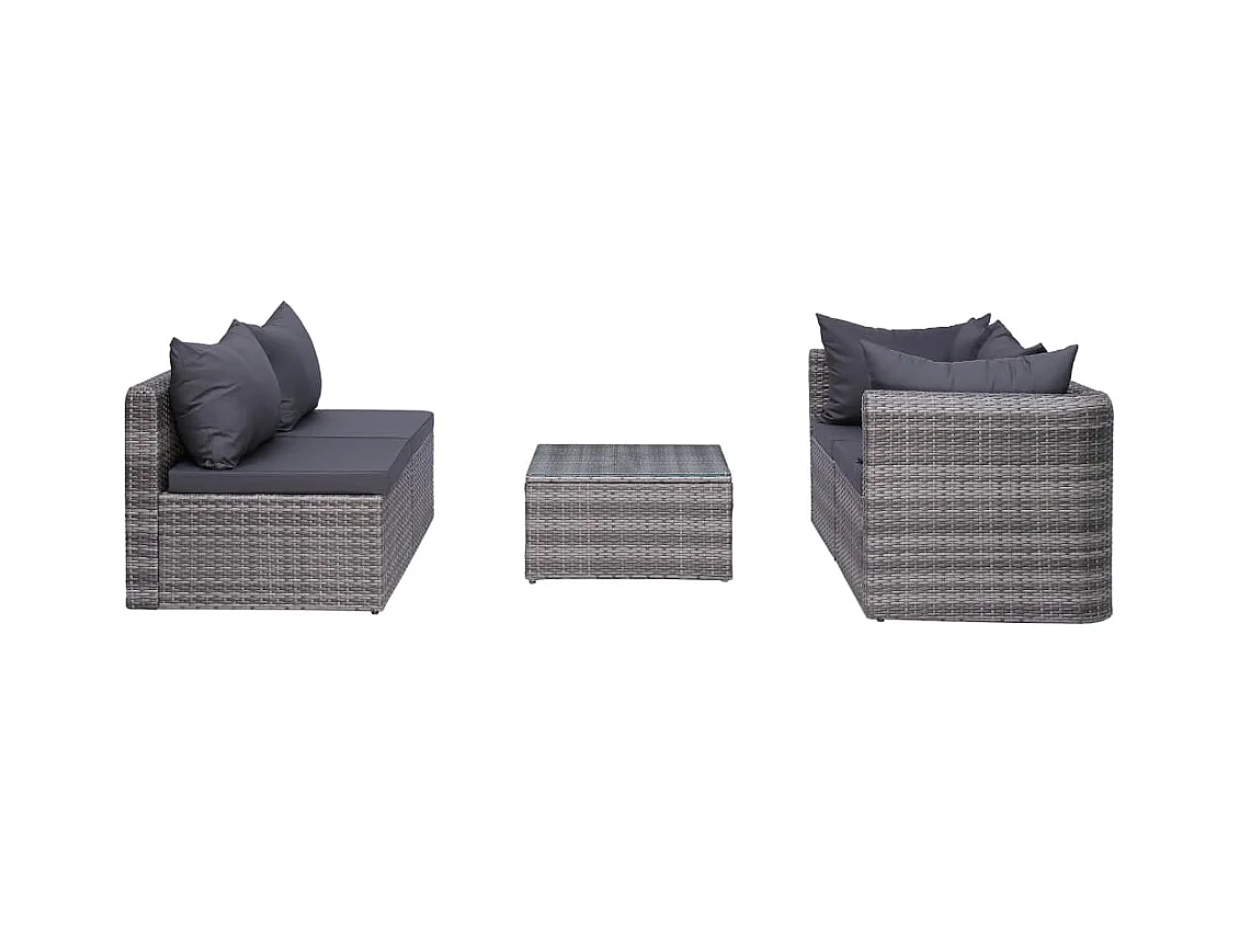 Conjunto sofás de jardim c/ almofadões 4 pcs vime PE cinzento