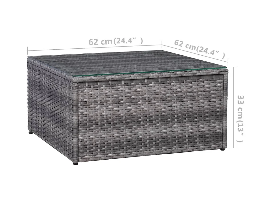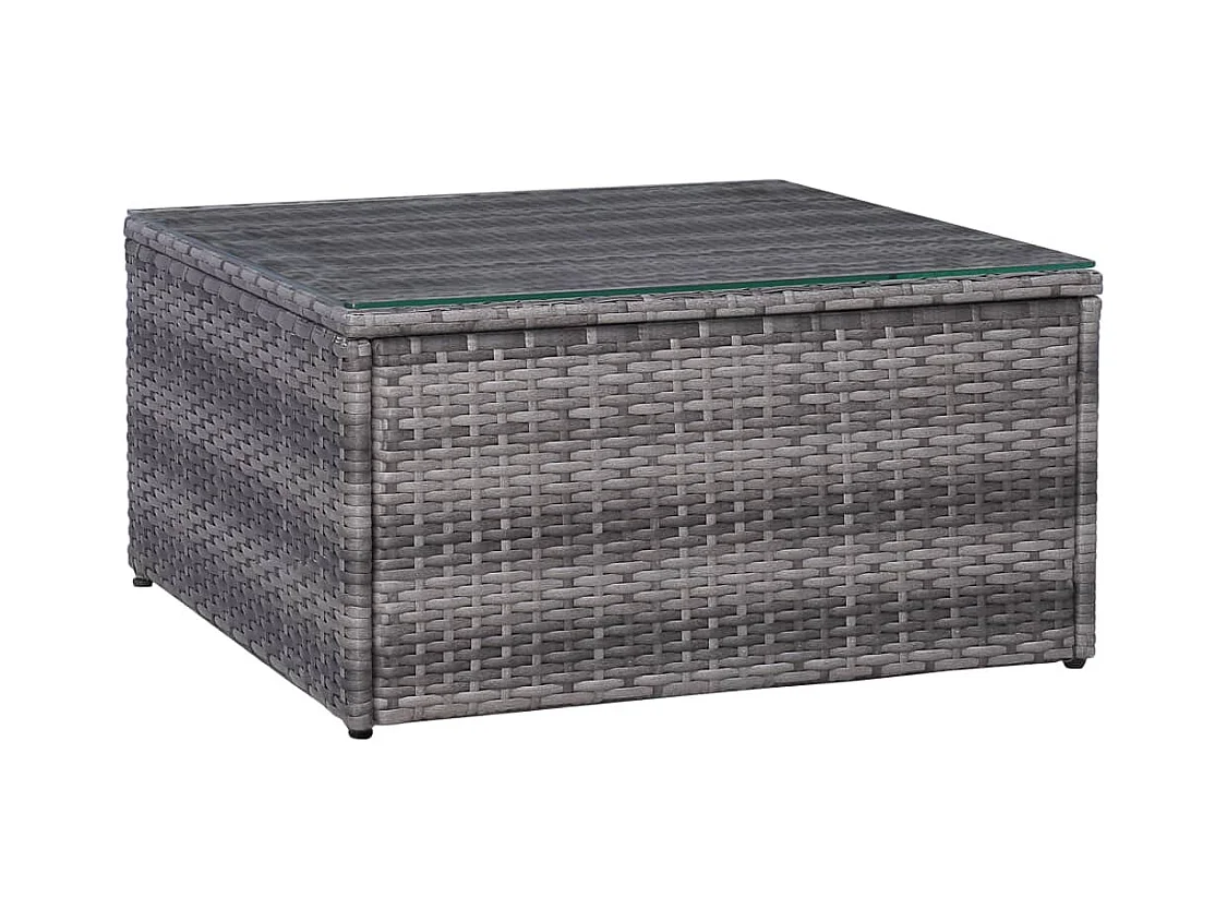 4 pcs conjunto lounge exterior c/ almofadões vime PE cinzento