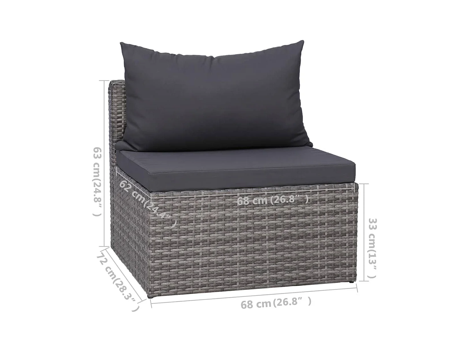 5 pcs sofás de jardim c/ almofadões+almofadas vime PE cinzento