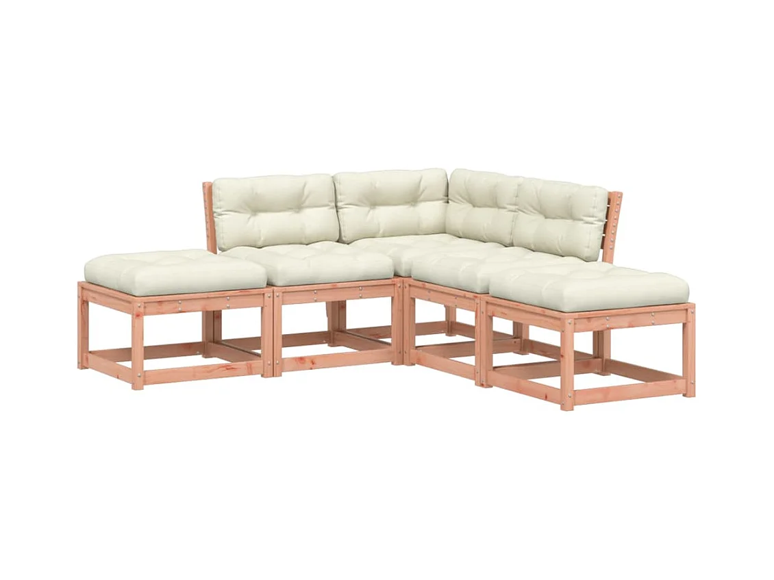 5 peças conj. sofás jardim c/ almofadões madeira douglas maciça