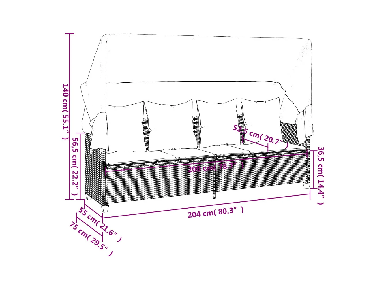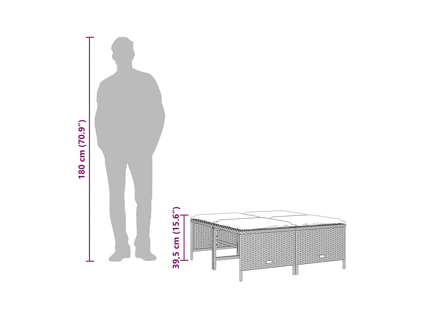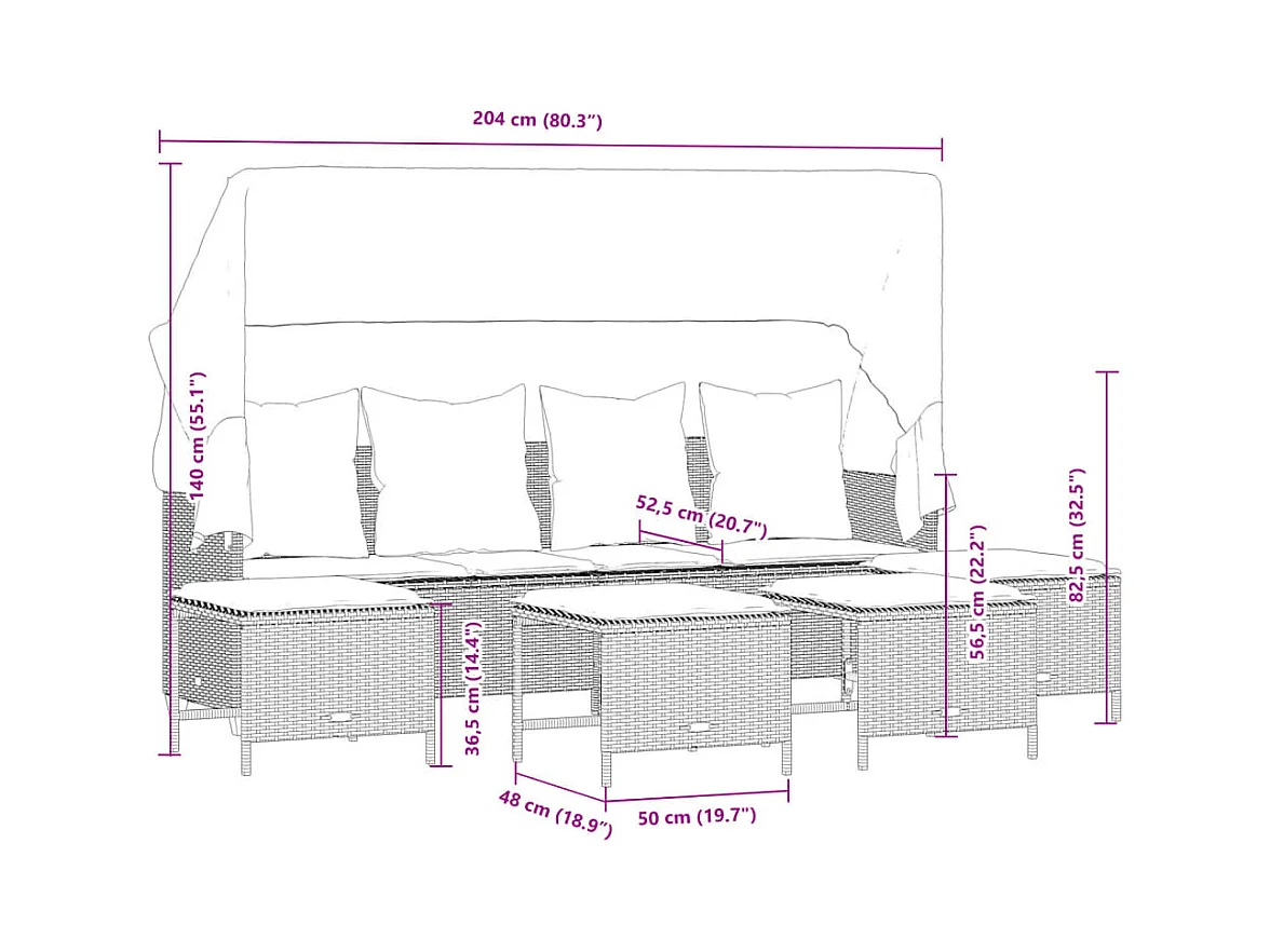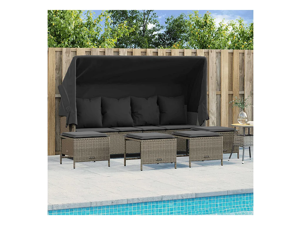 5 peças conj. sofás jardim com almofadões vime PE cinzento-claro