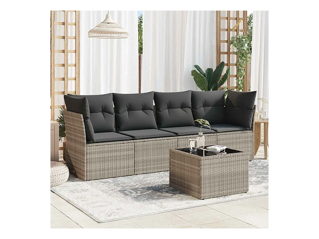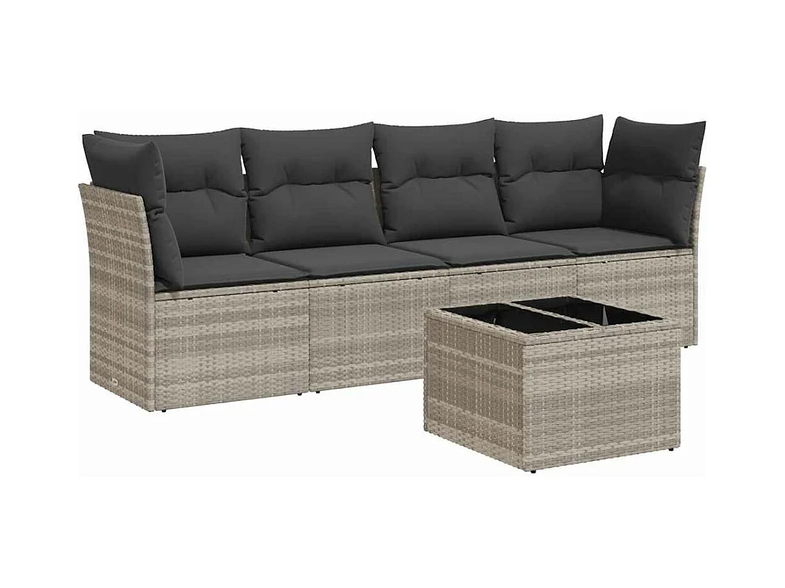 5 peças conj. sofás jardim com almofadões vime PE cinzento-claro