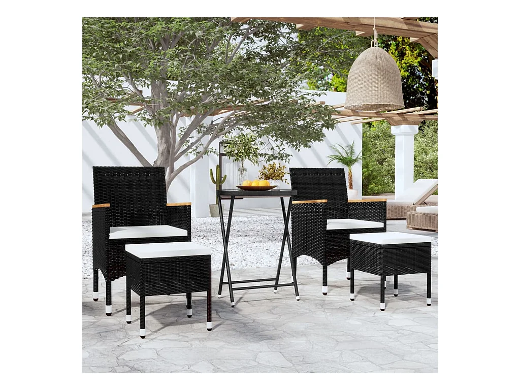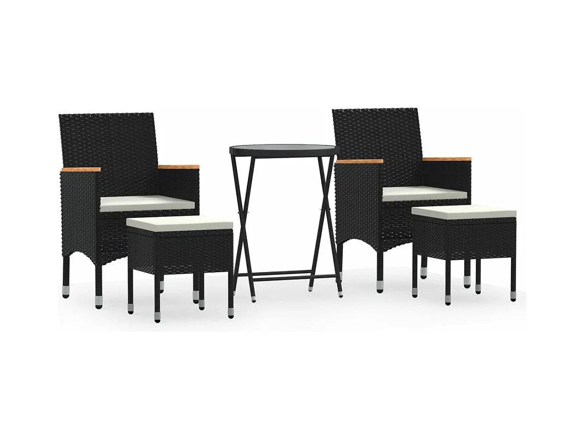 5 peças conjunto bistrô de jardim vime PE e vidro temperado preto