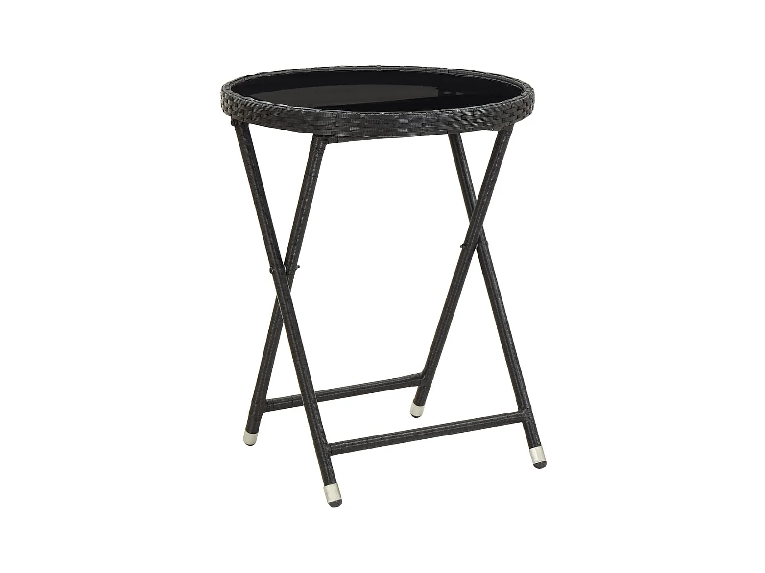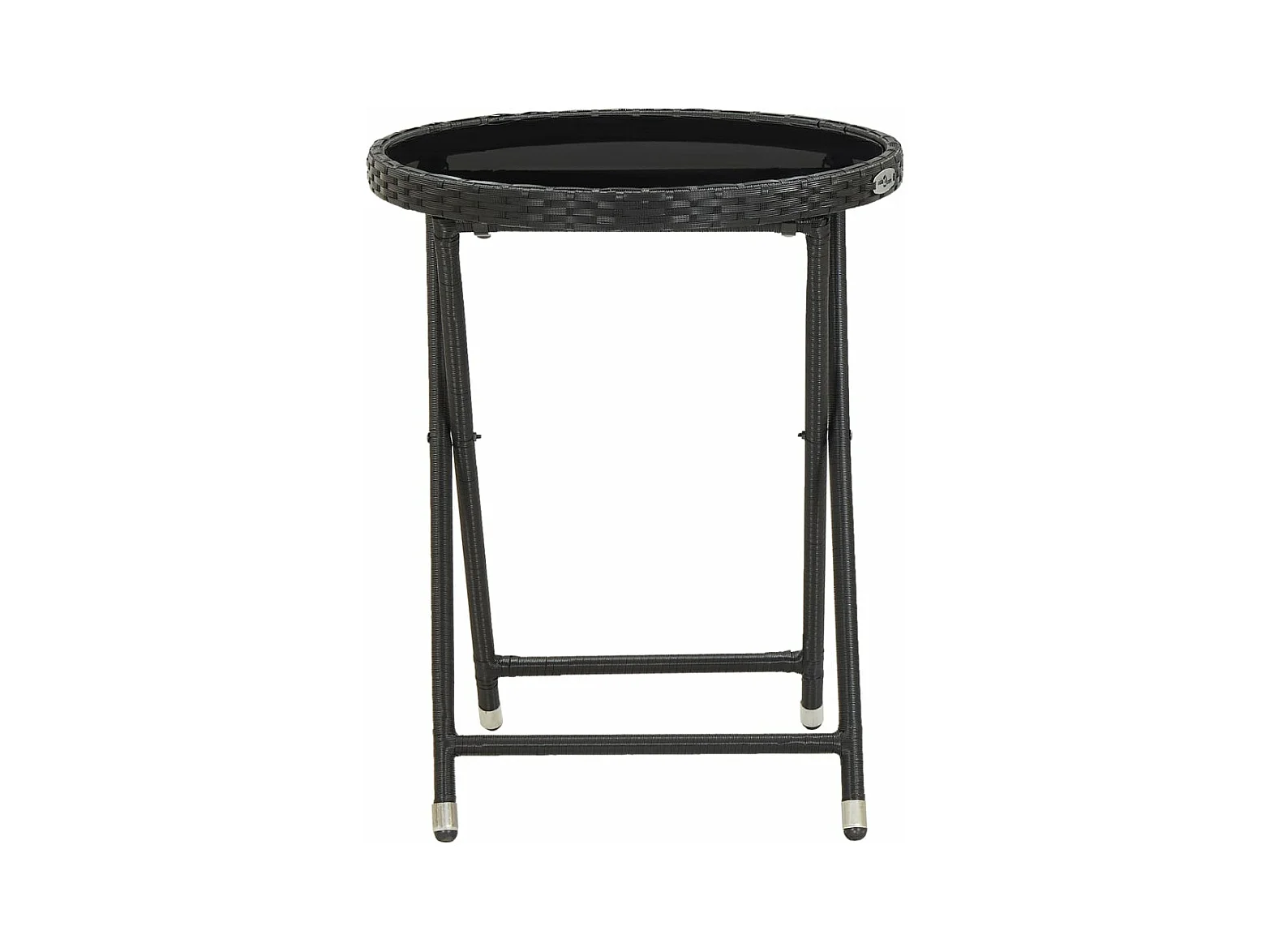 3 peças conjunto bistrô p/ jardim vime PE e vidro temperado preto