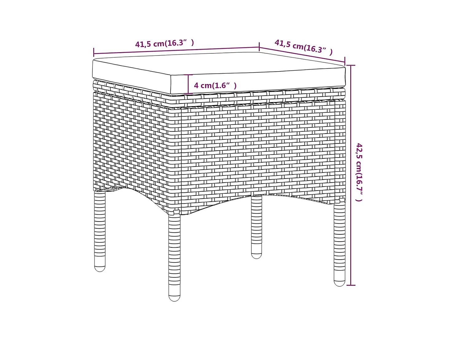 3 peças conjunto de bistrô com almofadões vime PE preto