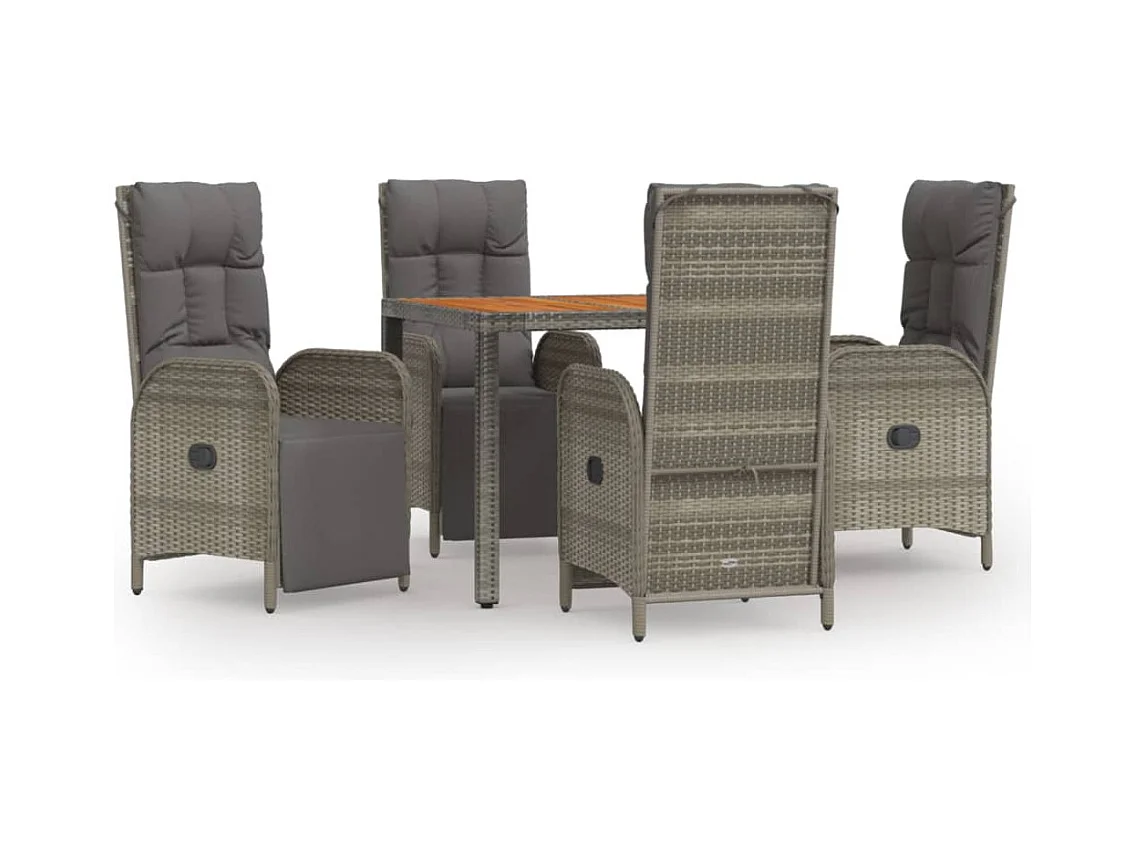5 peças conjunto de jantar para jardim com almofadões vime PE cinza