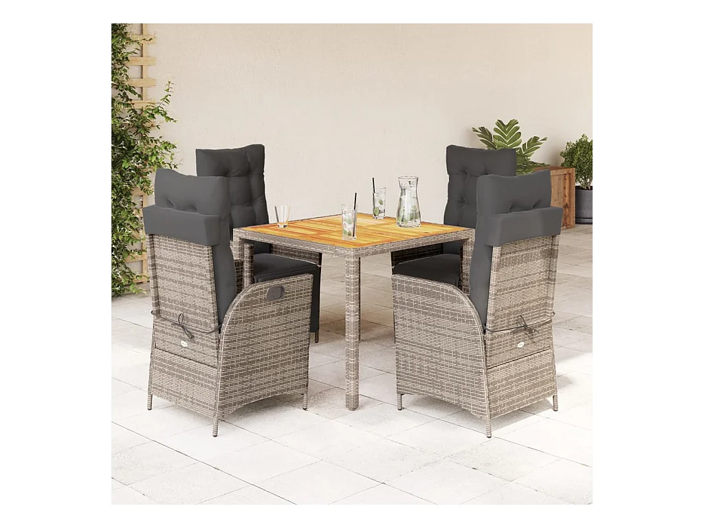 5 peças conjunto de jantar p/ jardim c/ almofadões vime PE cinza