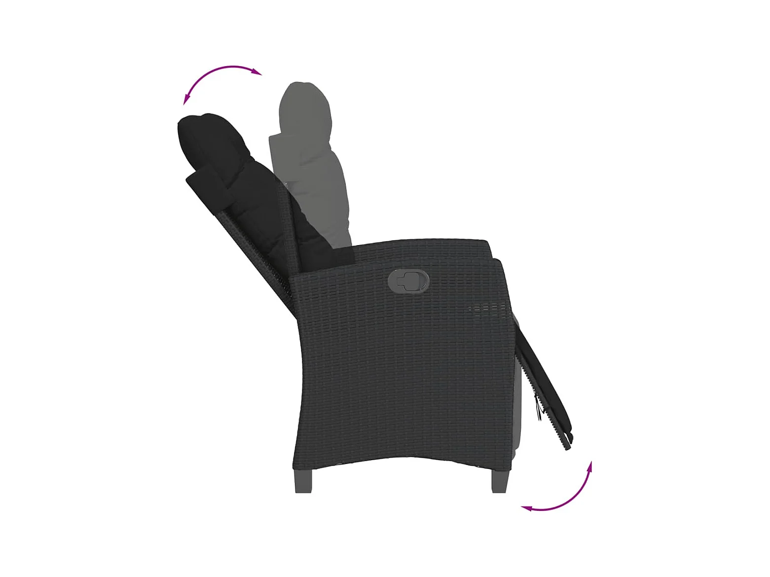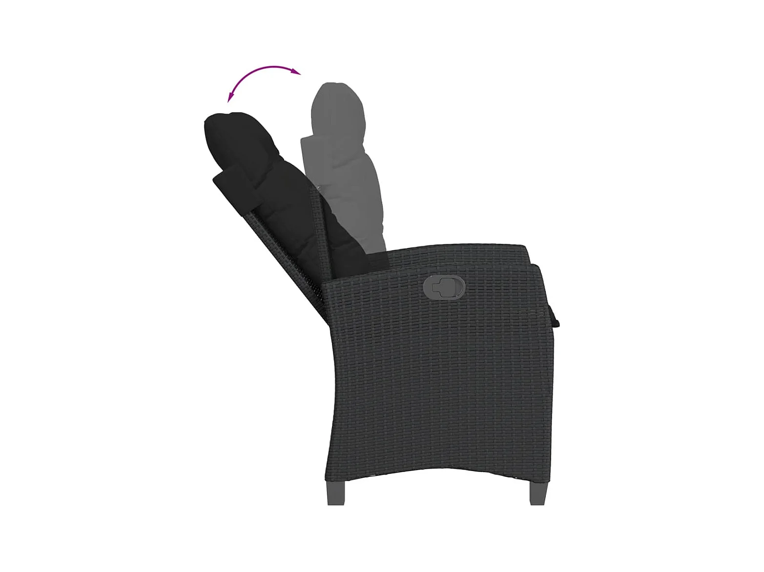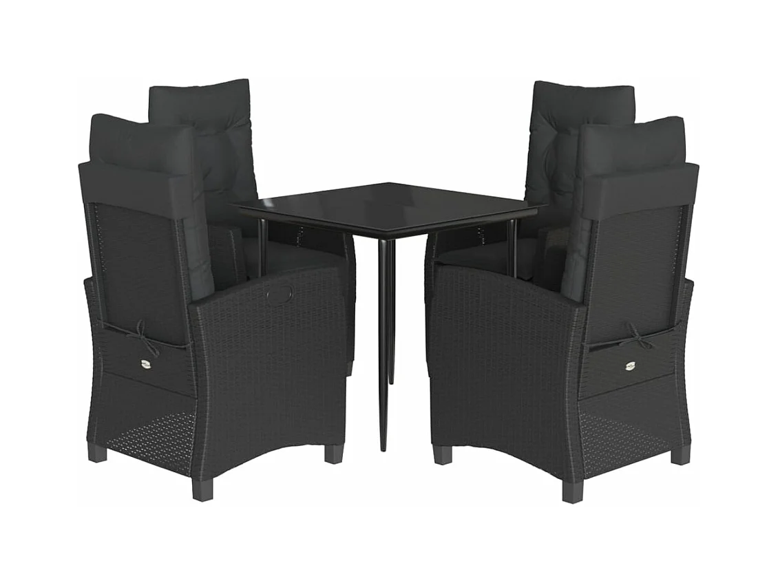 5 peças conjunto de jantar p/ jardim c/ almofadões vime PE preto