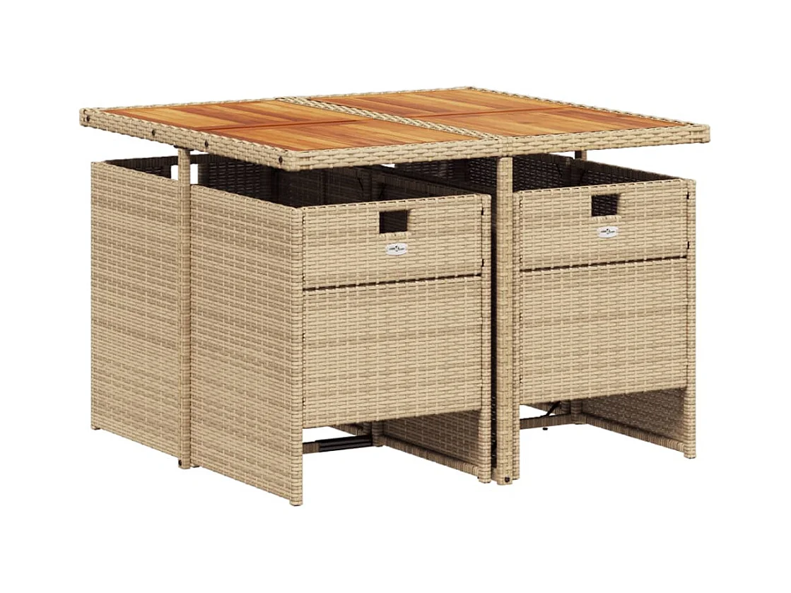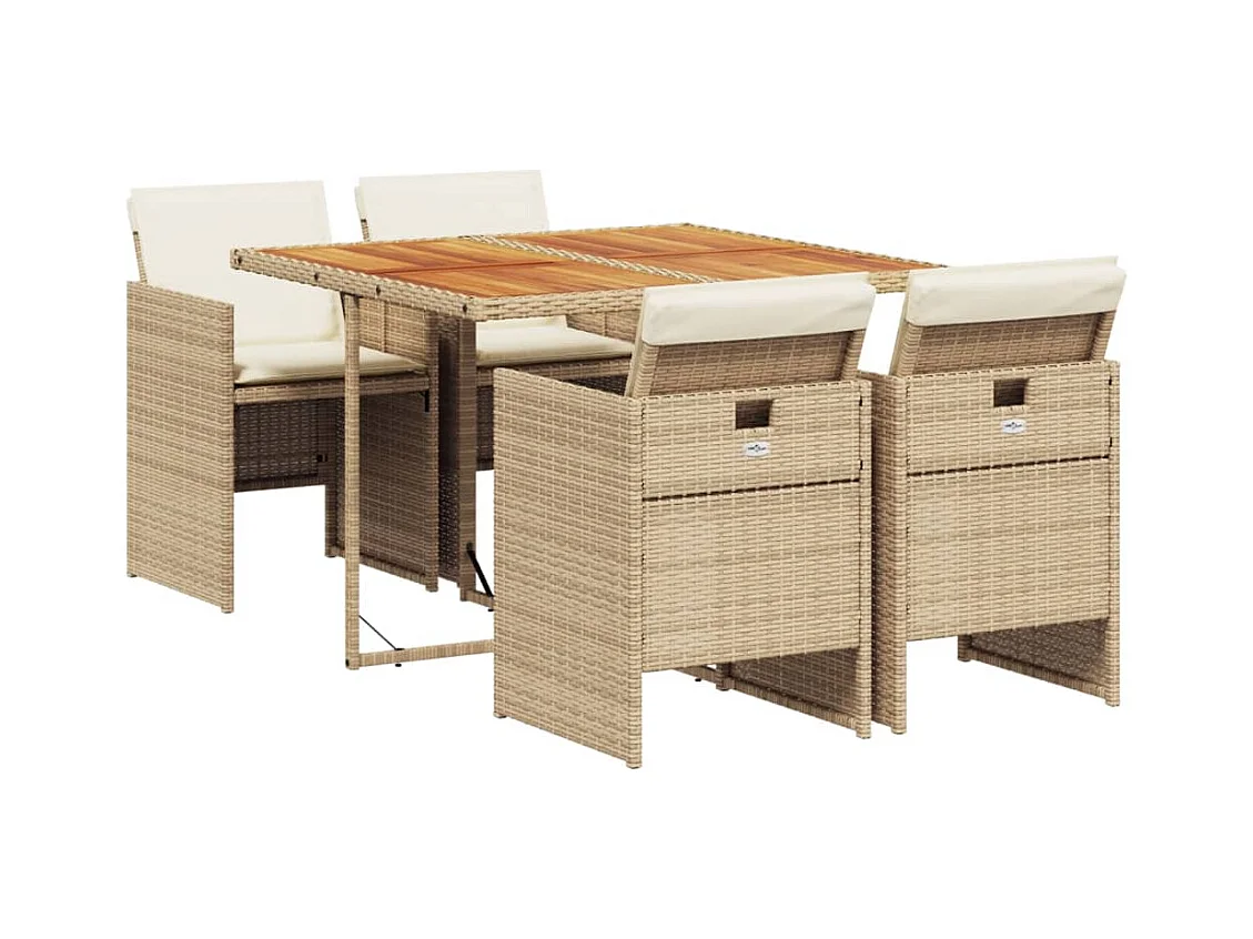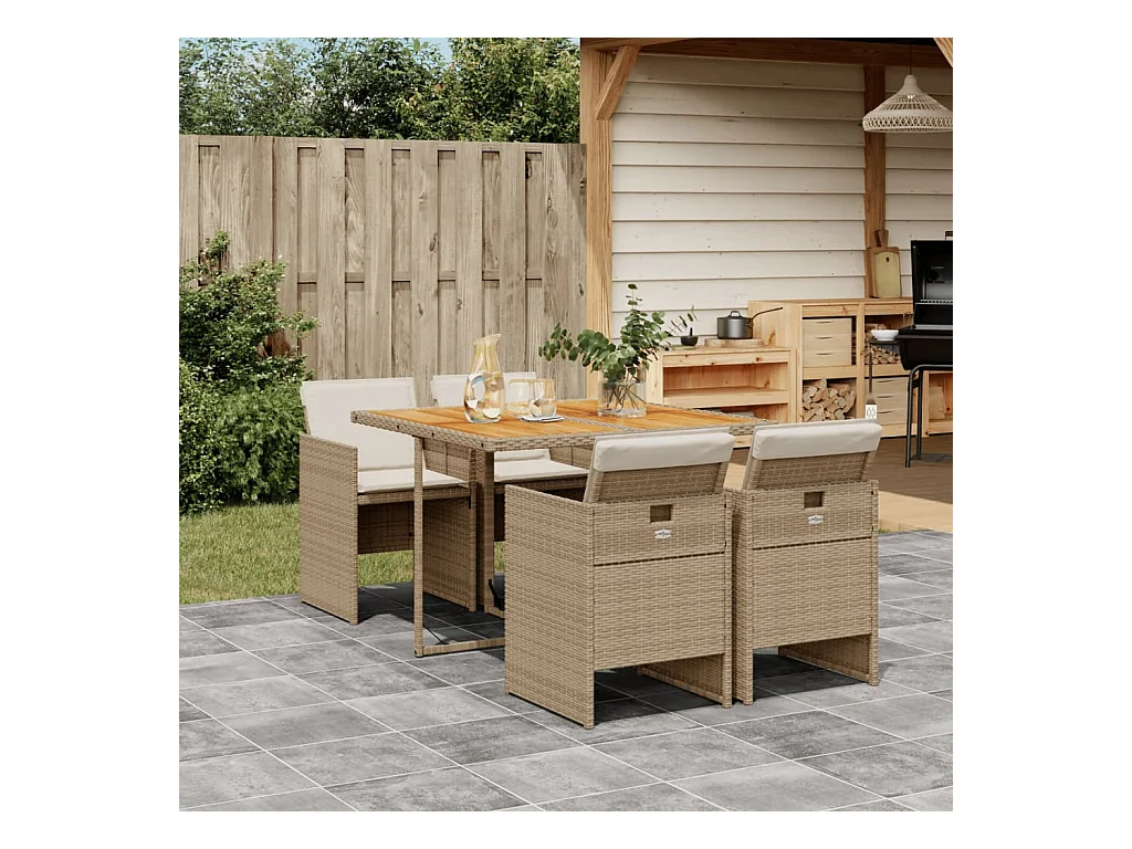 5 peças conjunto de jantar para jardim com almofadões vime PE bege