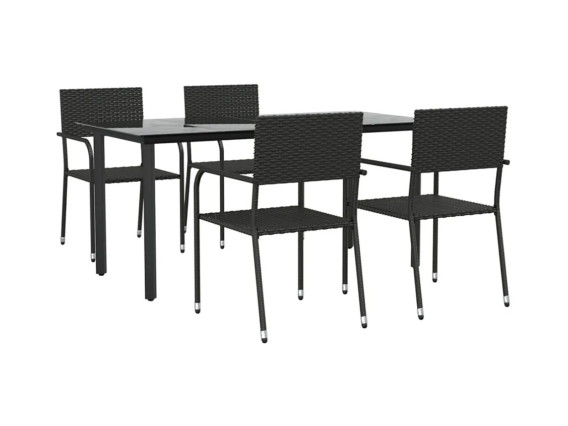 5 peças conjunto de jantar p/ jardim vime PE preto