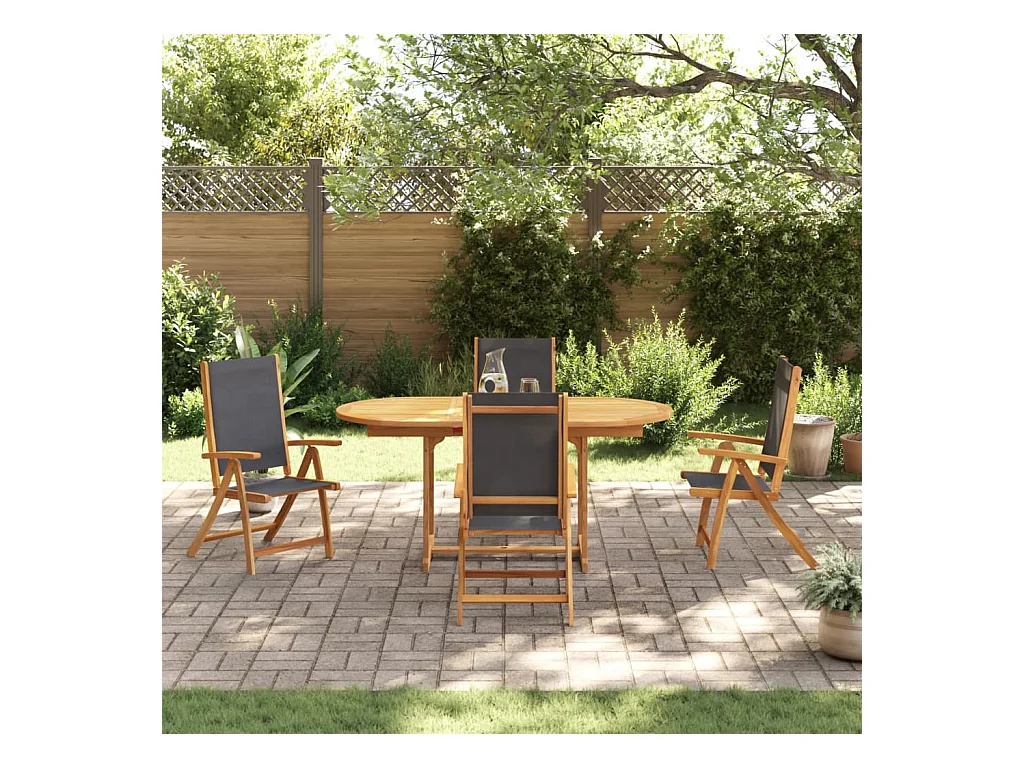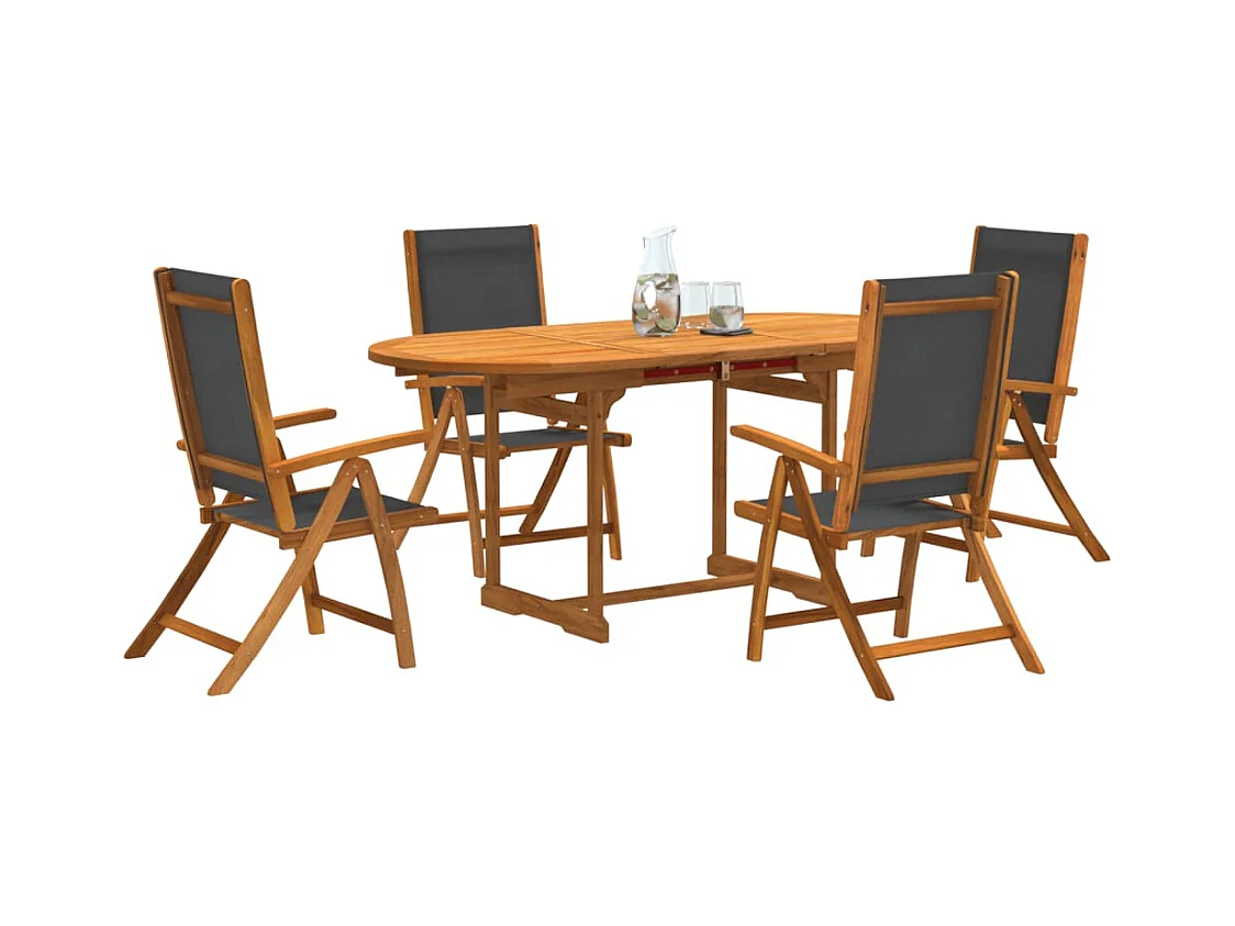 5 peças conjunto de jantar para jardim acácia maciça e textilene