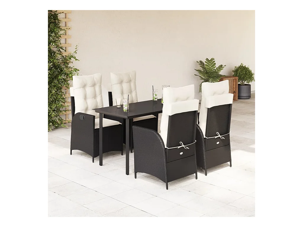 5 peças conjunto de jantar para jardim com almofadões vime PE preto