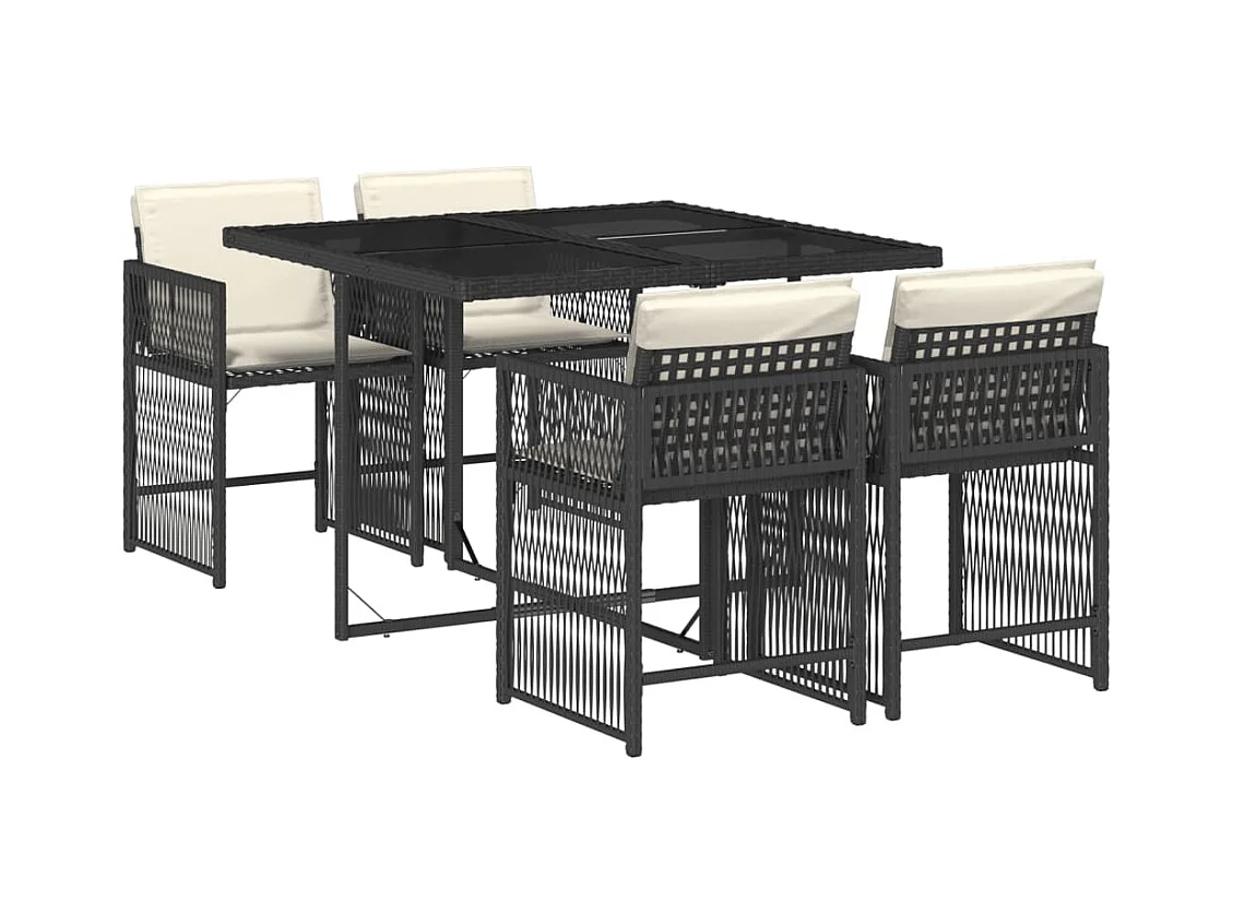 5 peças conjunto de jantar para jardim com almofadões vime PE preto