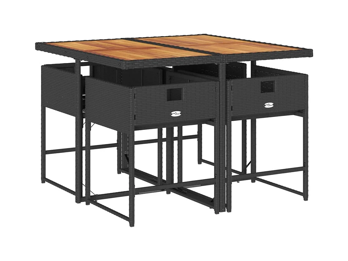 5 peças conjunto de jantar para jardim com almofadões vime PE preto
