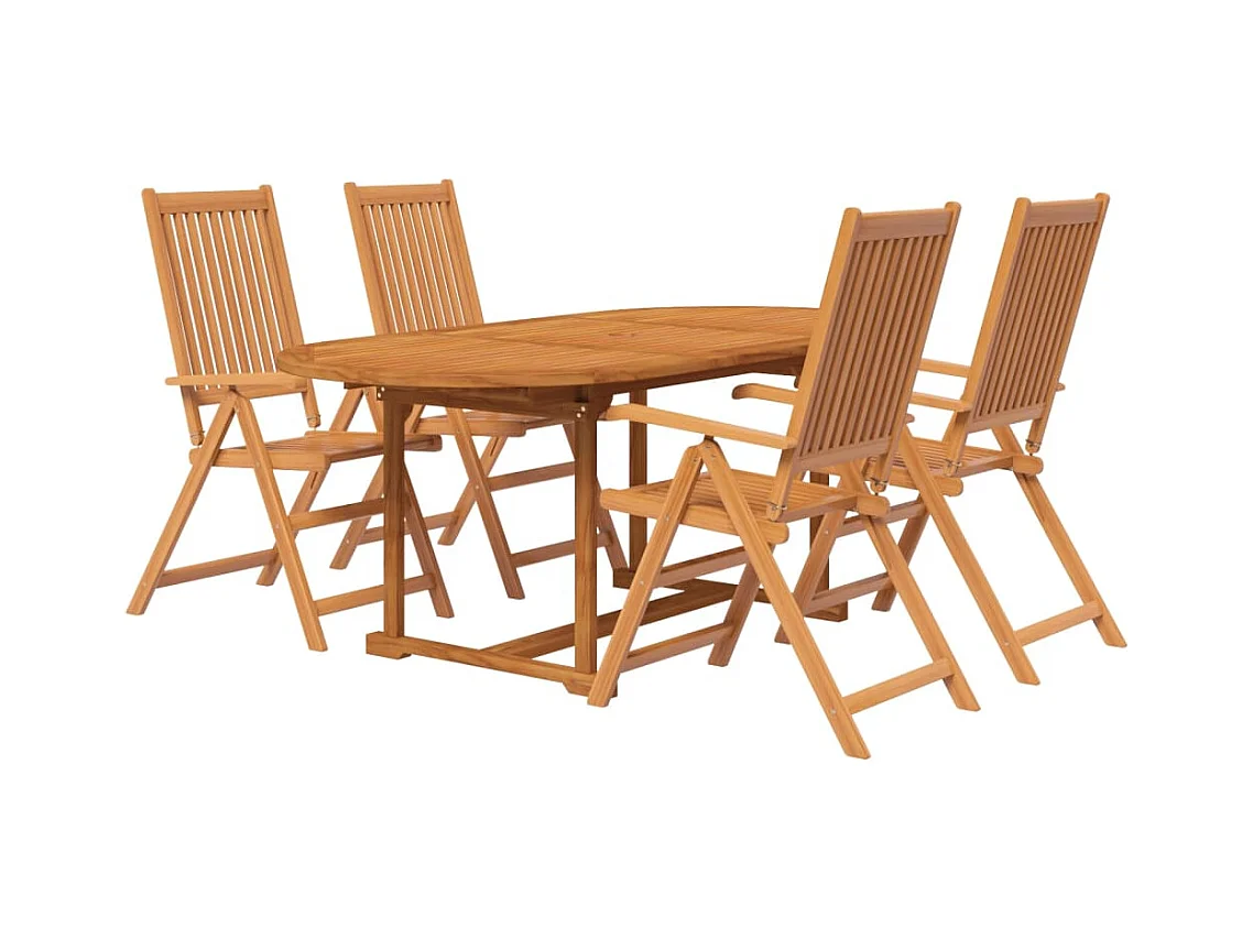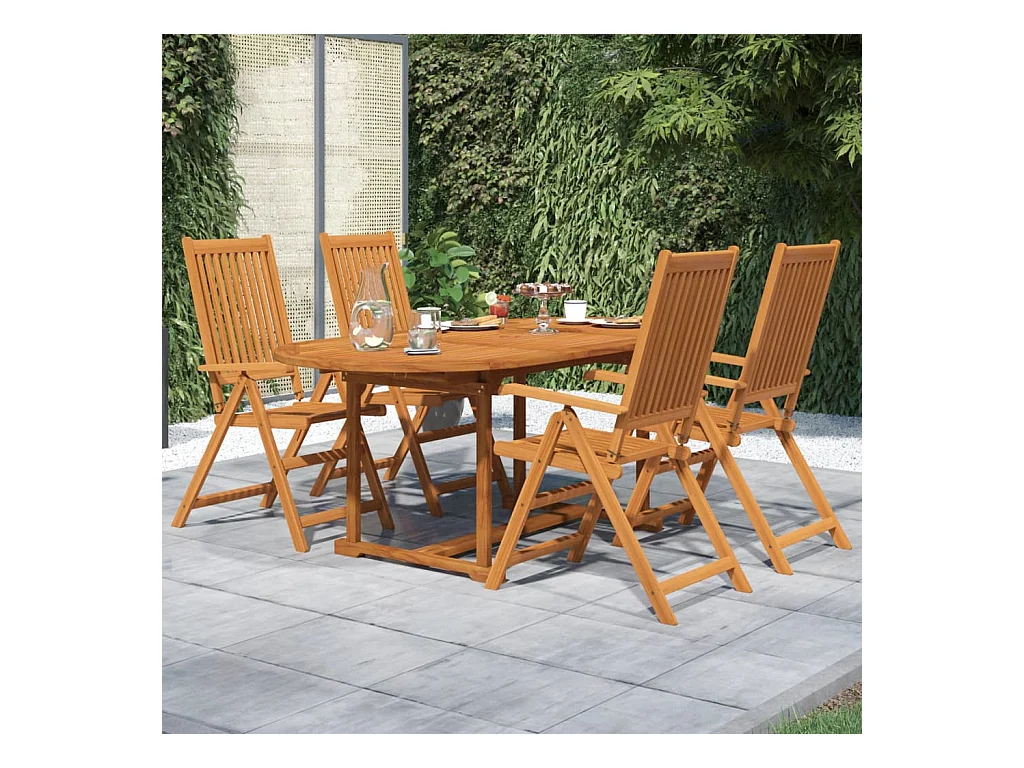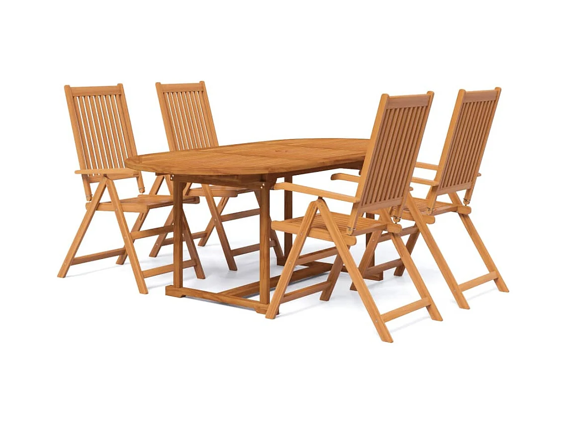 5 peças conjunto de jantar para jardim madeira de acácia maciça