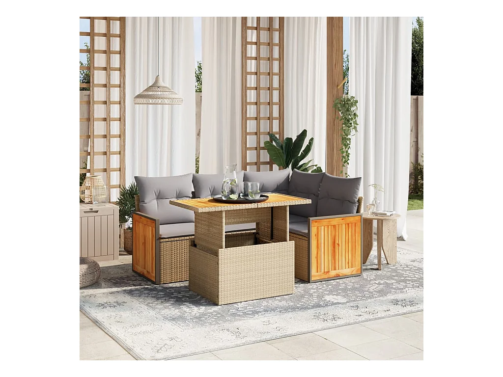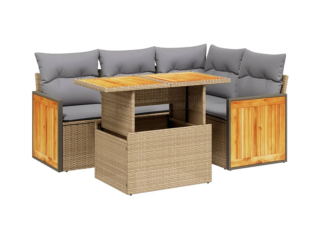 5 peças conjunto de sofás para jardim com almofadões vime PE bege