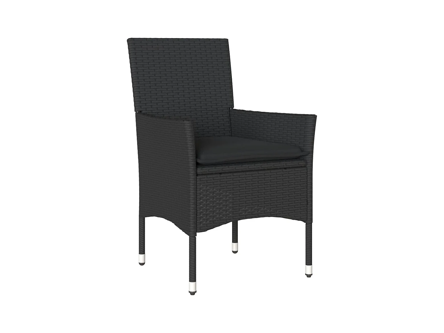 5 peças conjunto de jantar p/ jardim c/ almofadões vime PE preto