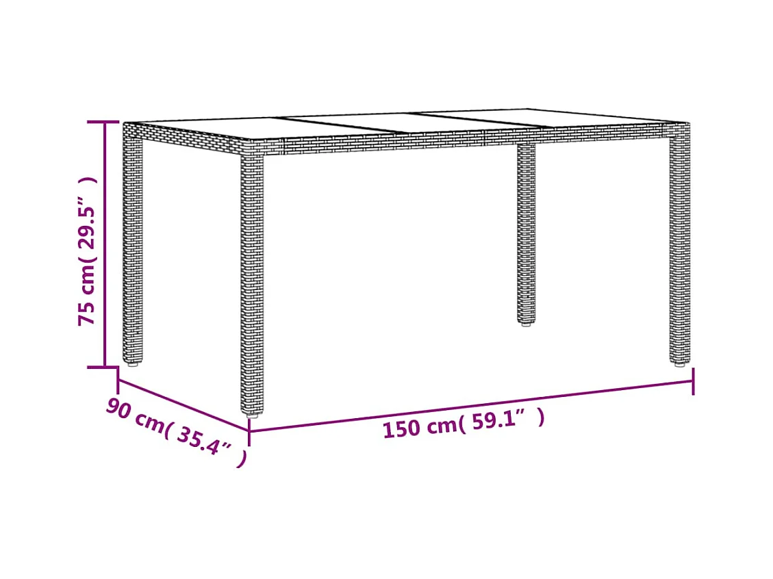 5 peças conjunto jantar jardim comalmofadões vime PE/vidro preto